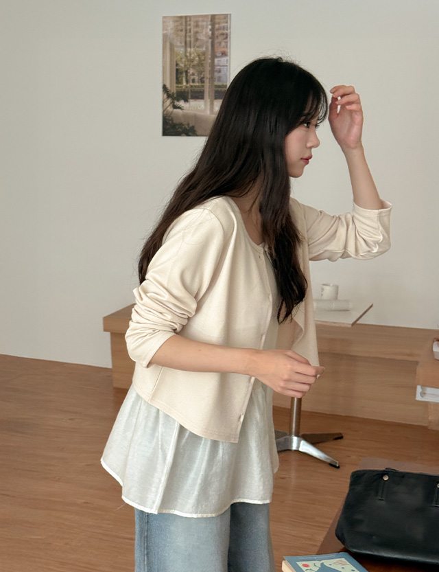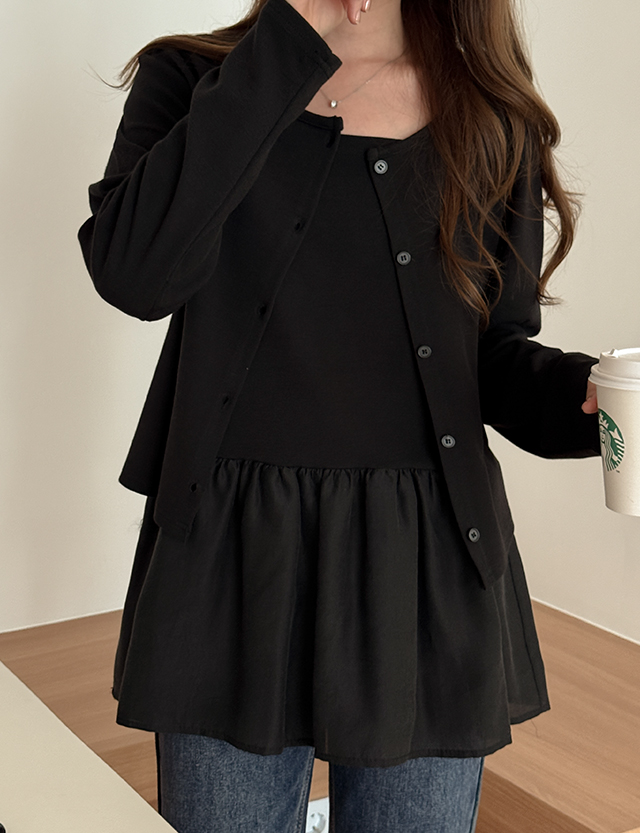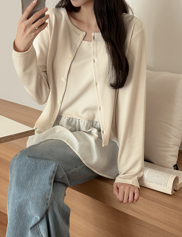 여리하고 페미닌한 무드가 가득 들어간 가디건 나시 세트