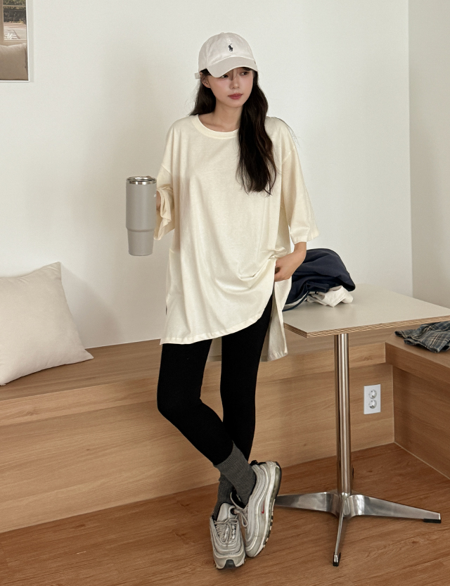 어디에나 휘뚤마뚤 리얼 宽松 언발 长款 T恤衫 84024