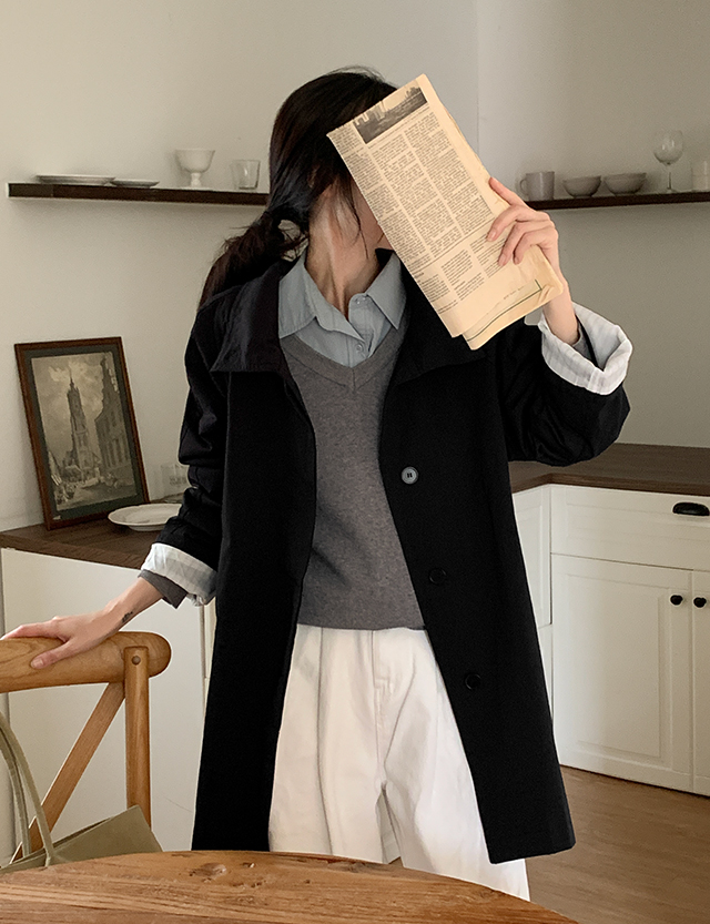✔ 넥 단을 오픈하여 즐기기 좋은 큰 카라 디테일