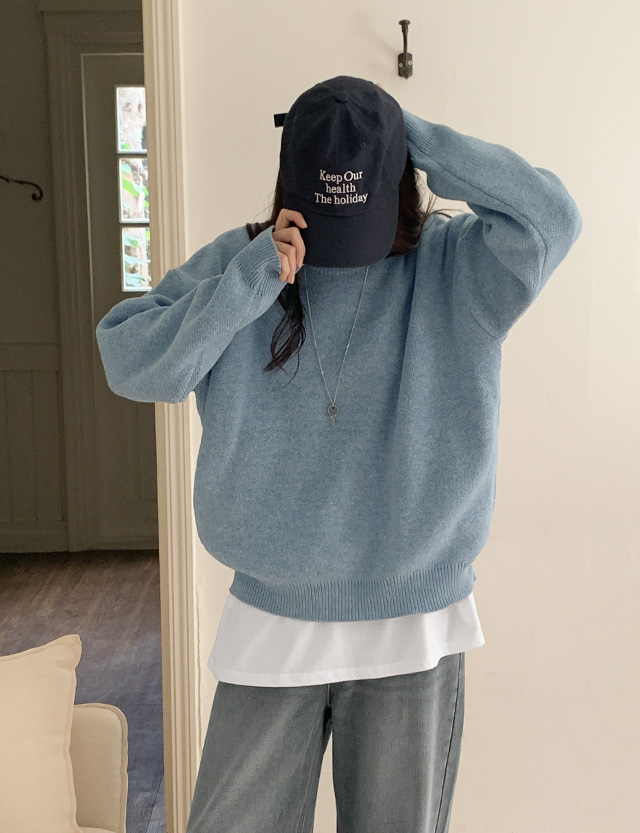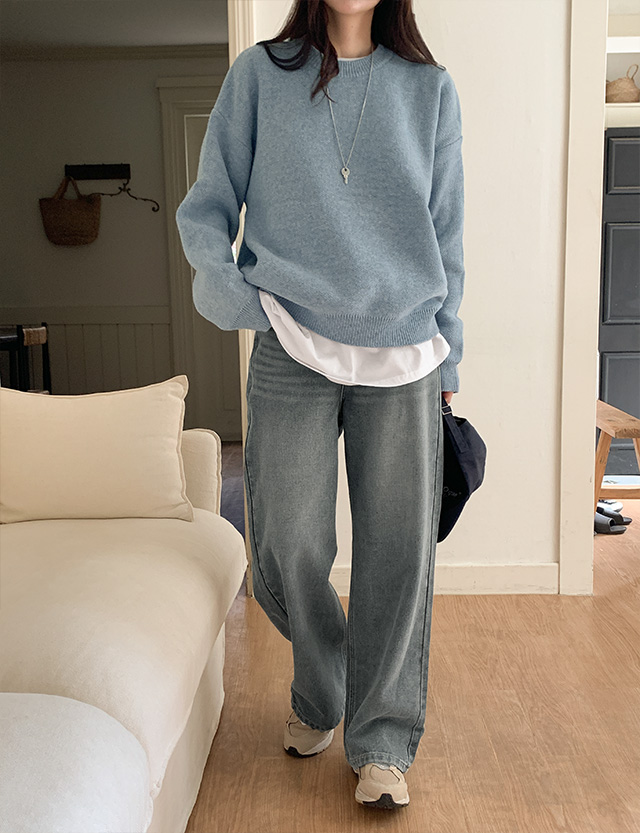 고급스러운 촉감이 매력적인 캐시미어 라운드넥 니트