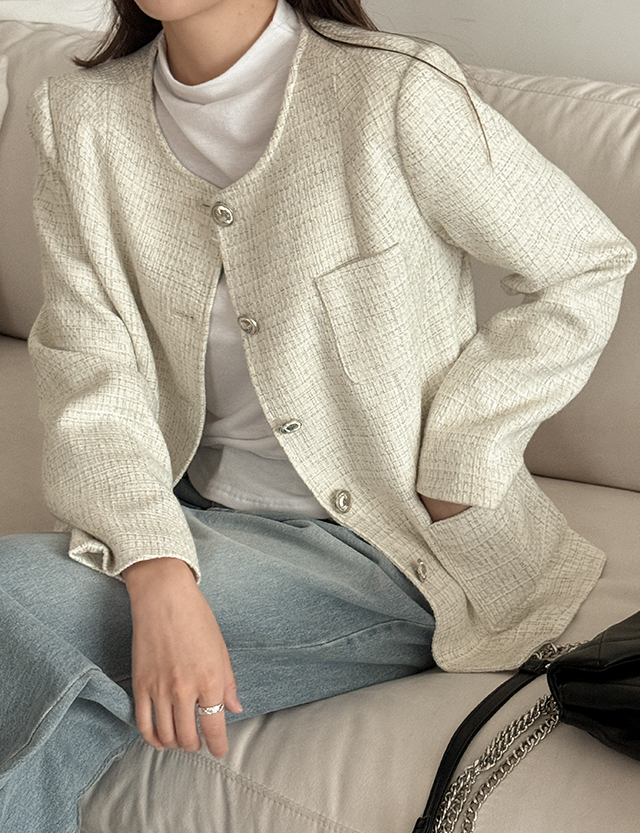 포멀하거나 페미닌한 무드로 착용하기 좋은 트위드 자켓