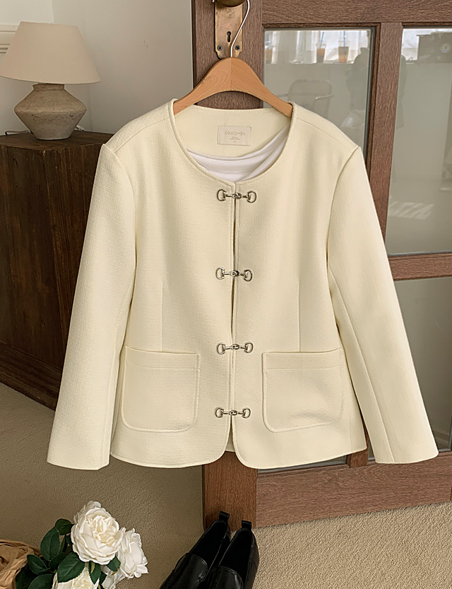 复古/古典 홀스빗 圆领 宽松 粗呢 夹克 83892