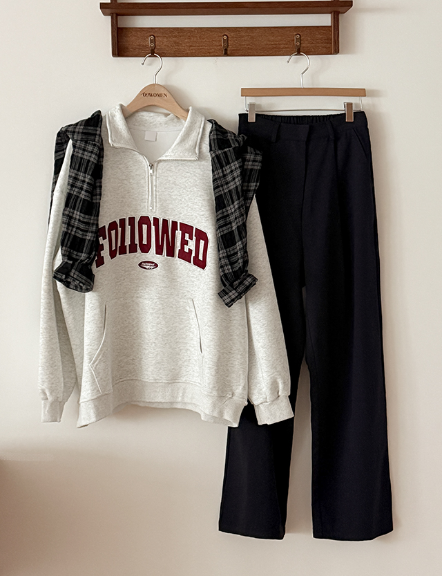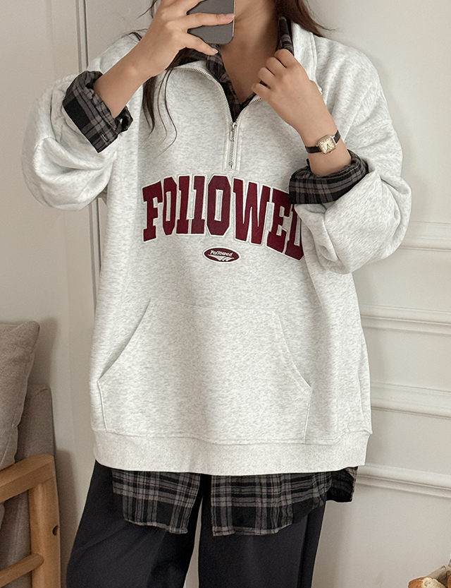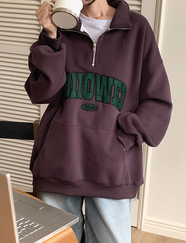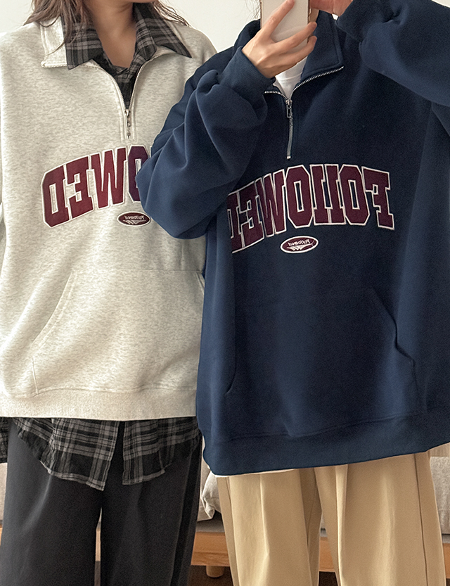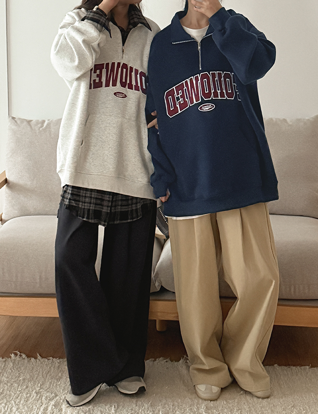 누구나 편하게 착용하실 수 있는 반집업 맨투맨이에요.