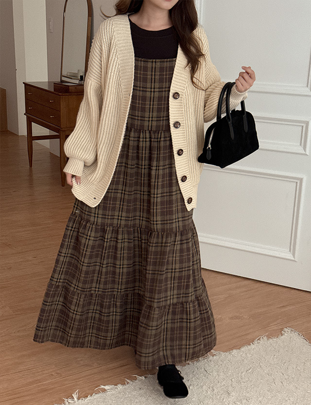 메유 格子 뷔스티에 长款 连衣裙 83954