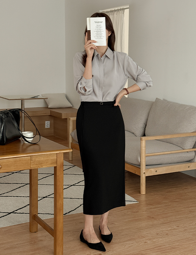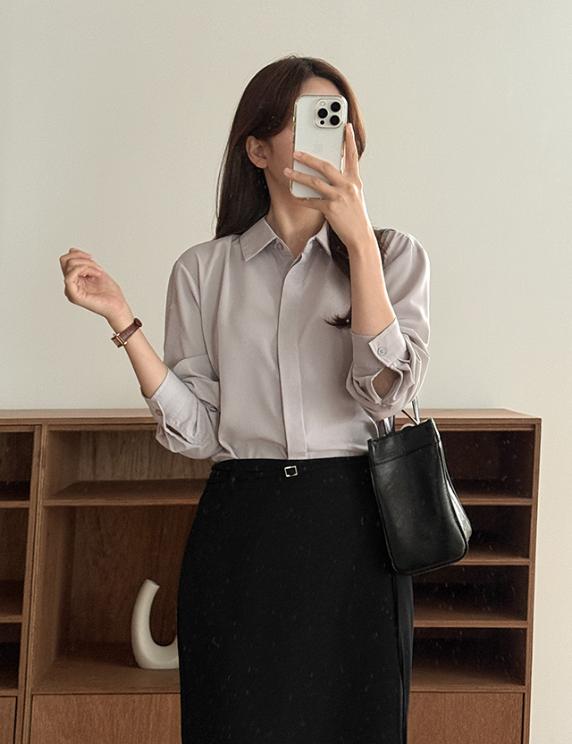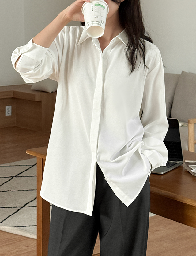 깔끔 정석의 실루엣을 가진 링클프리 히든 버튼 블라우스