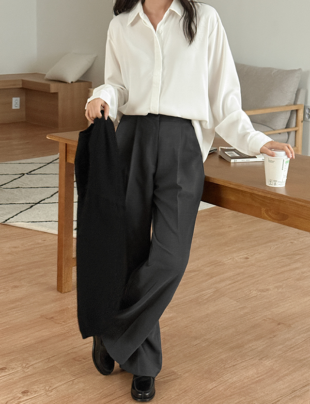• [2가지기장]포인더 히든밴딩 핀턱 直筒 宽 宽松裤 84187