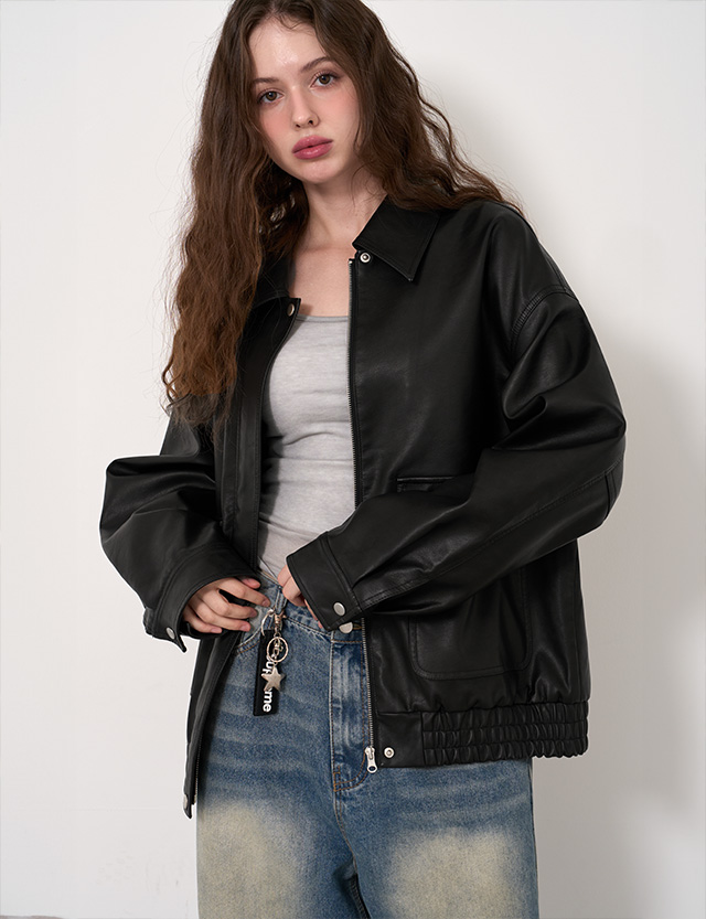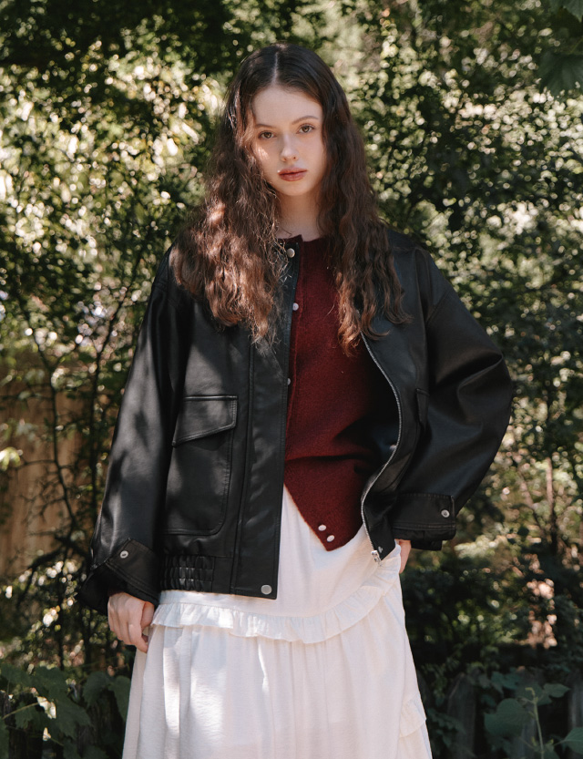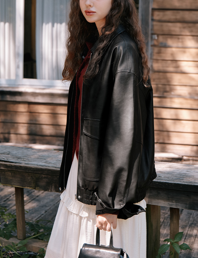 뉴마드 洗碗机 레더 宽松 夹克 83969