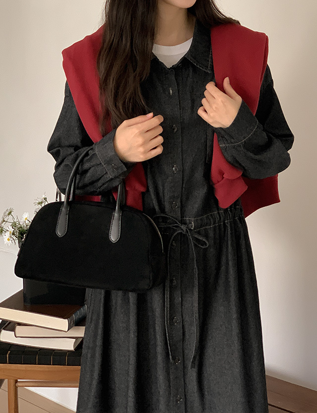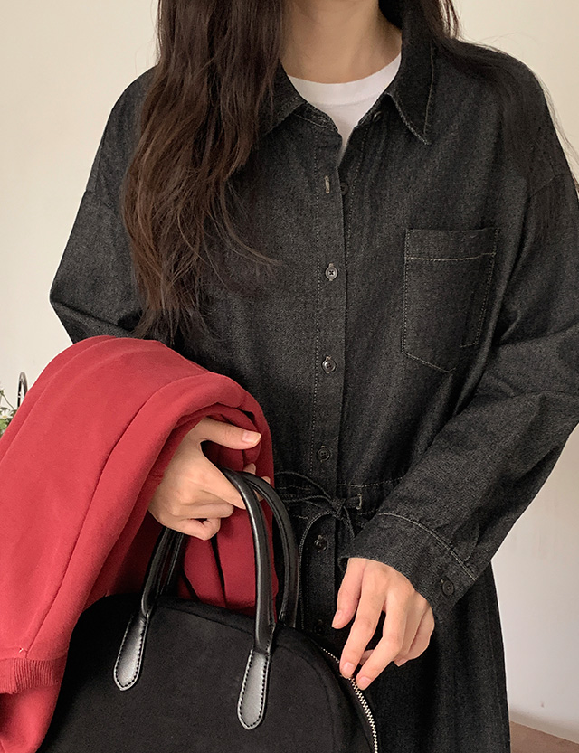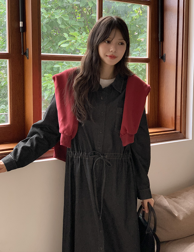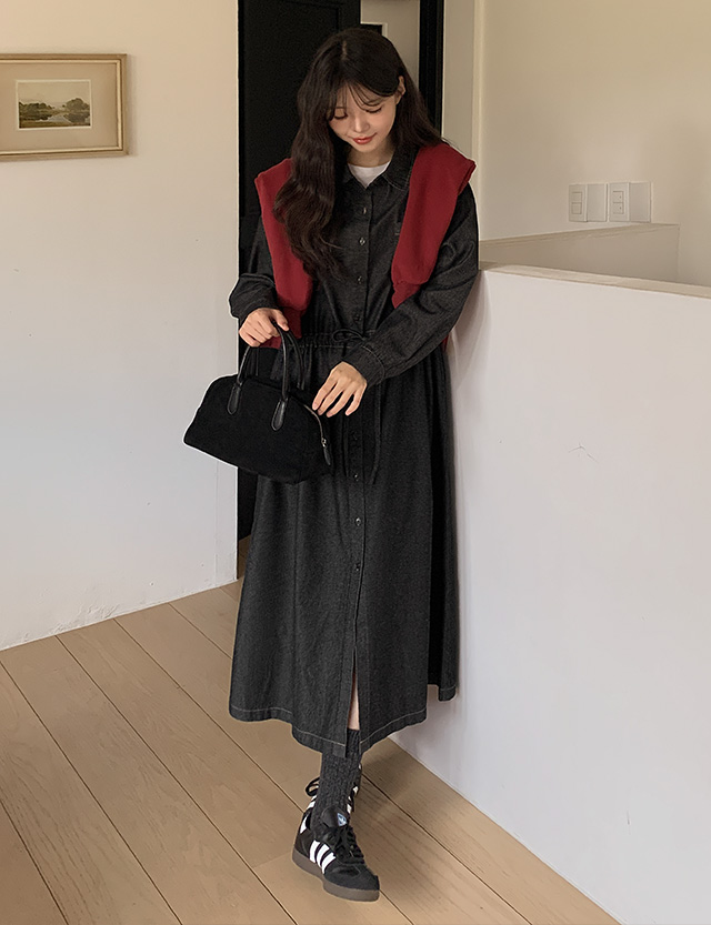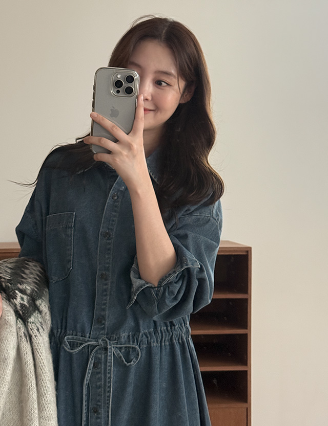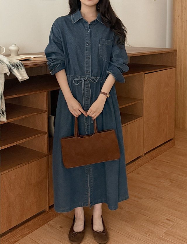 차분한 가을에 잘 어울리는 데님 원피스에요