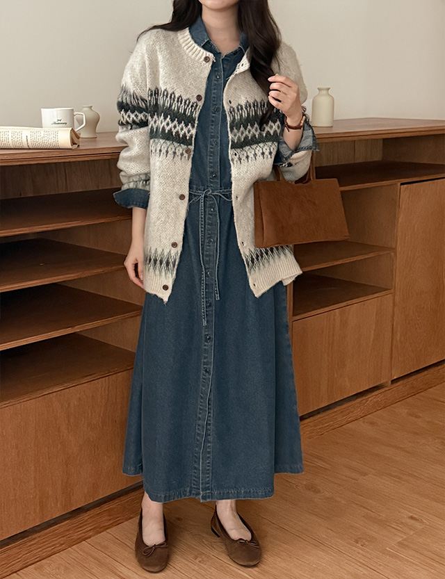 웨스턴 무드의 루즈핏 데님 롱 원피스