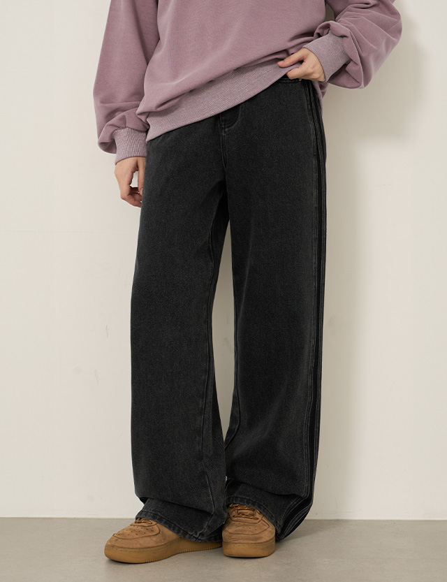 키샤 뒷밴딩 黑靑色 宽 트랙 牛仔色 短裤 84373