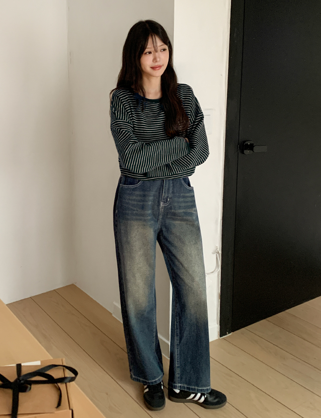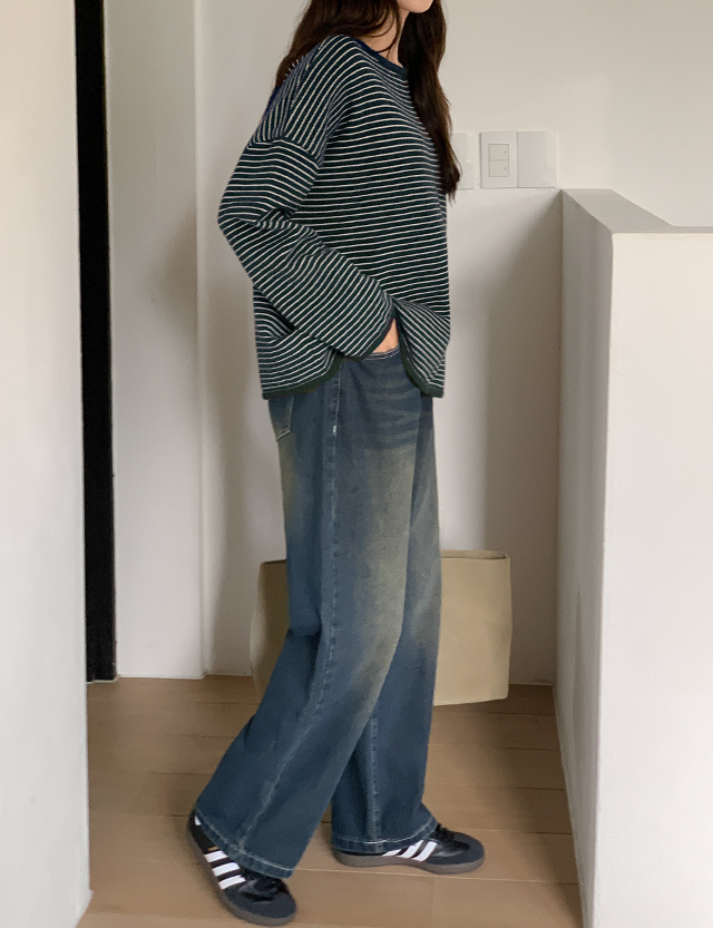 • [09초이스] 셀리나 条纹 宽松 针织衫 84330