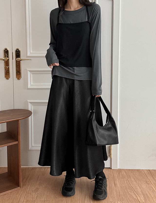 • [09초이스] 입자마자 여신핏 히든밴딩 绸缎 波浪群/喇叭裙 长款 裙子 84465