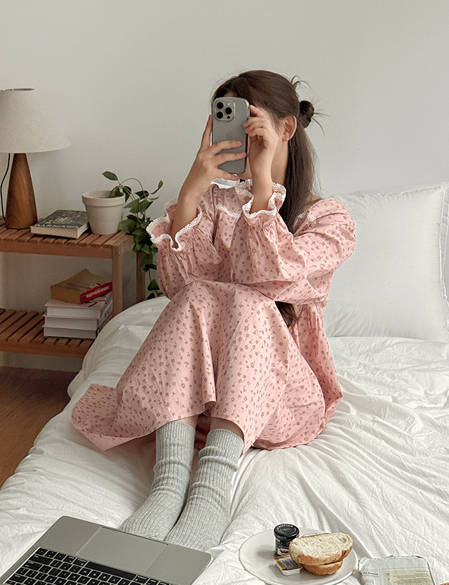 ✔ 전체적으로 작은 꽃무늬 패턴이 들어간 원단이