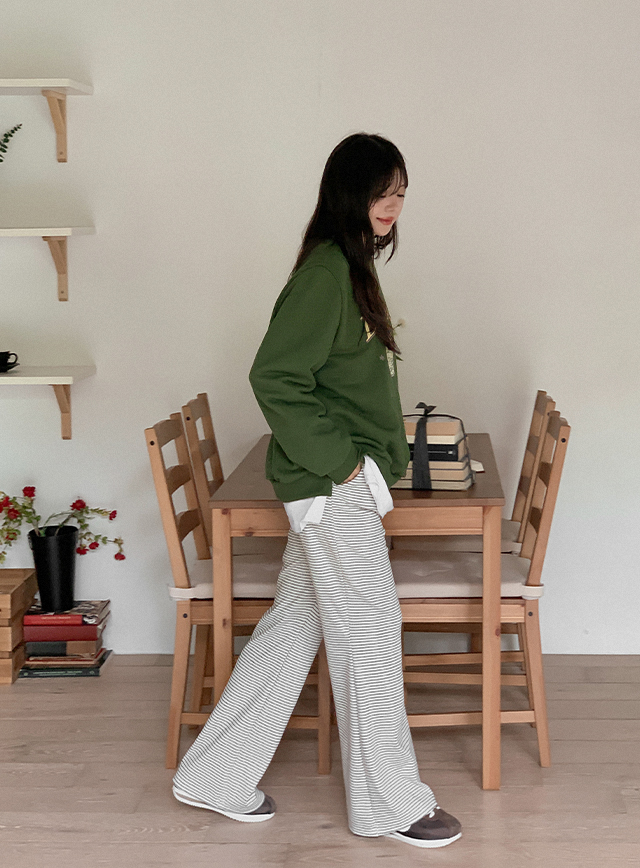 • 센티 세미와이드 松紧带 条纹 短裤 84342