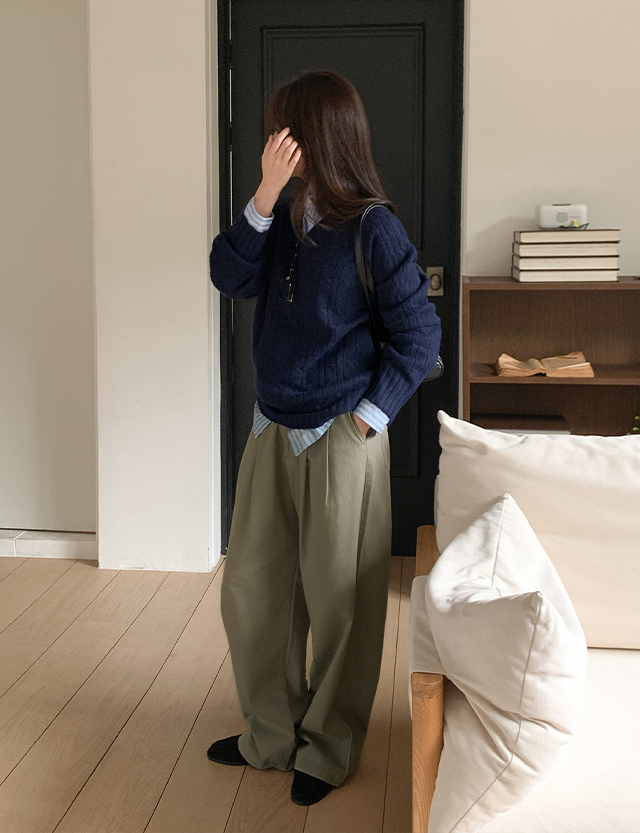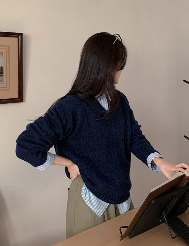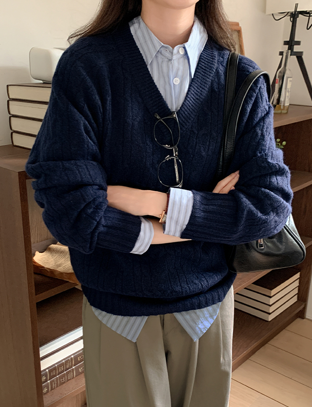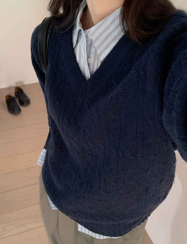 베이직 브이넥 꽈배기 니트 🍂