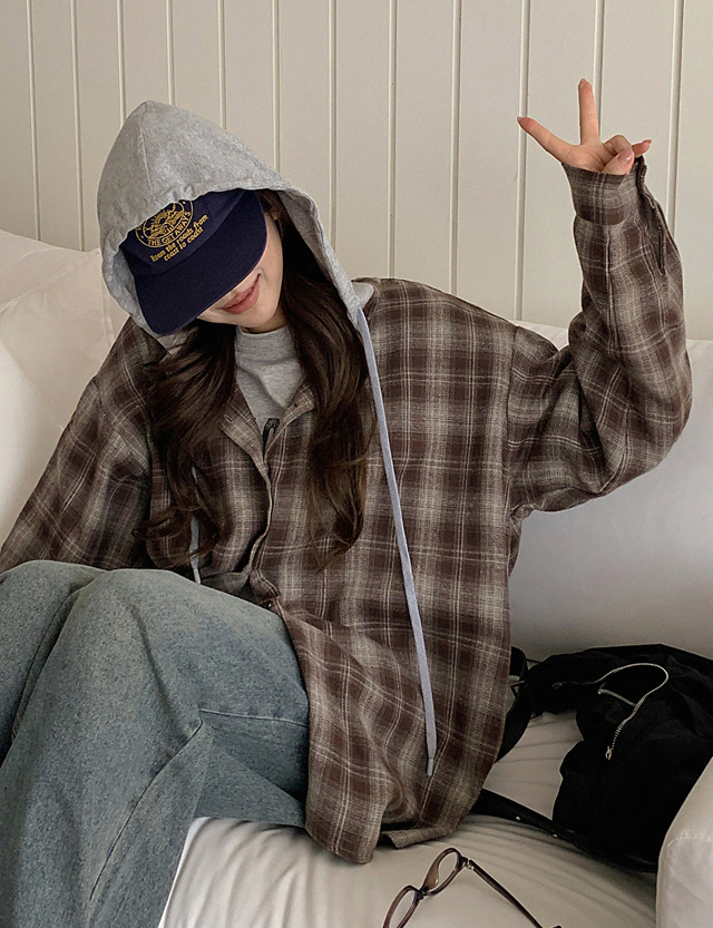글룩 리얼루즈핏 配色 卫衣 格子 衬衫 84242