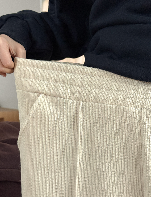 테리브 松紧带 절개 宽 竖纹 短裤 84656