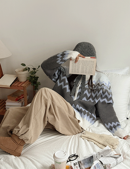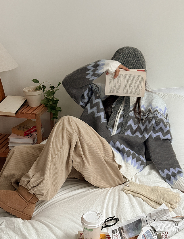 루프시 자가드 双重 拉链卫衣 针织衫 84475