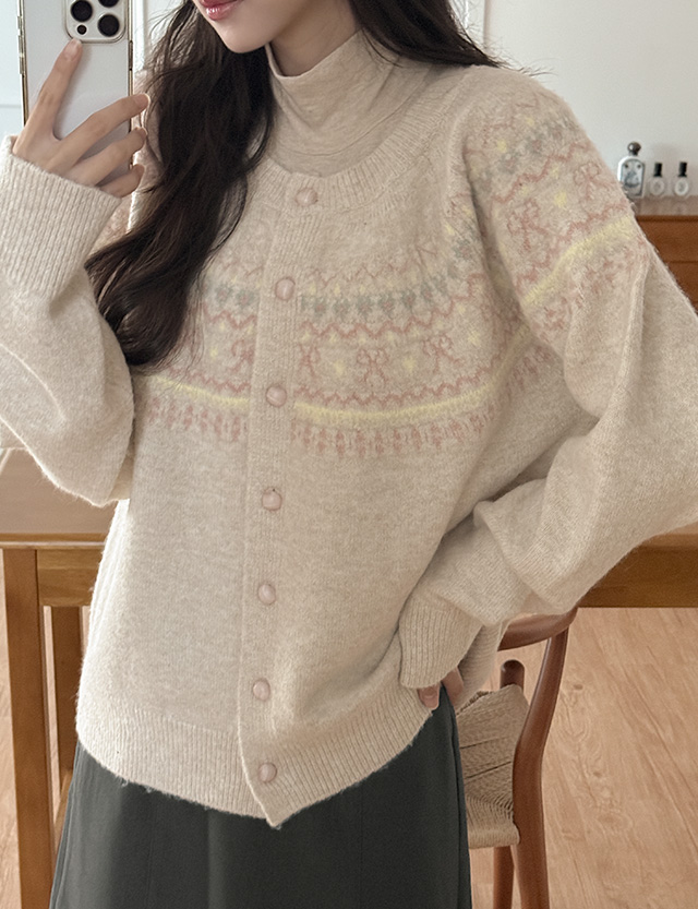 은은하고 로맨틱한 노르딕 가디건이에요.