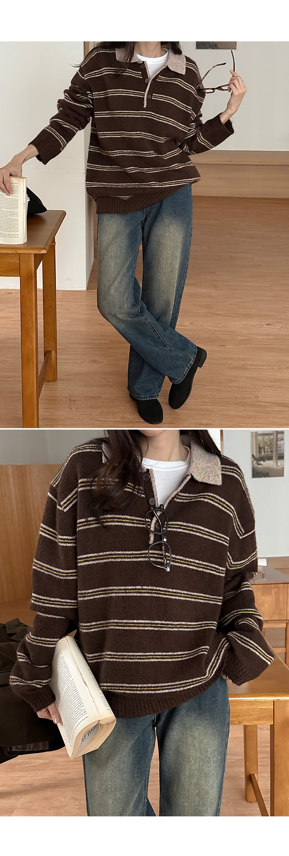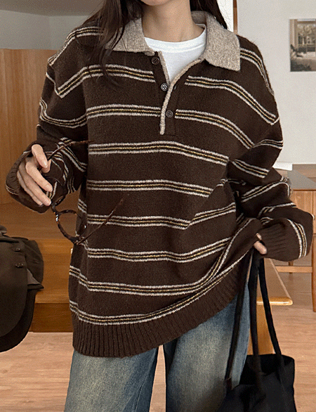 키민 条纹 领 羊毛 针织衫 84610