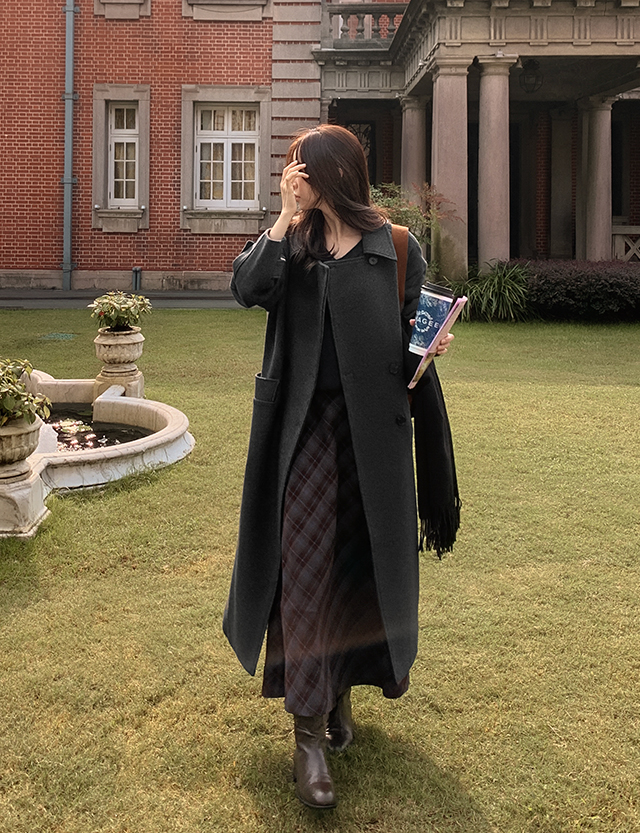 길게 흐르듯 떨어지는 롱 코트 특유의 존재감,