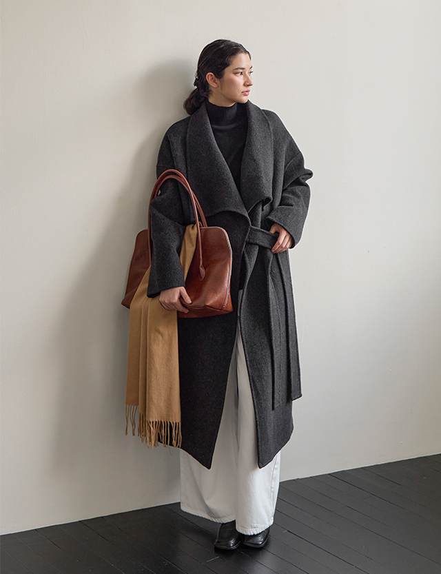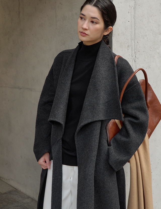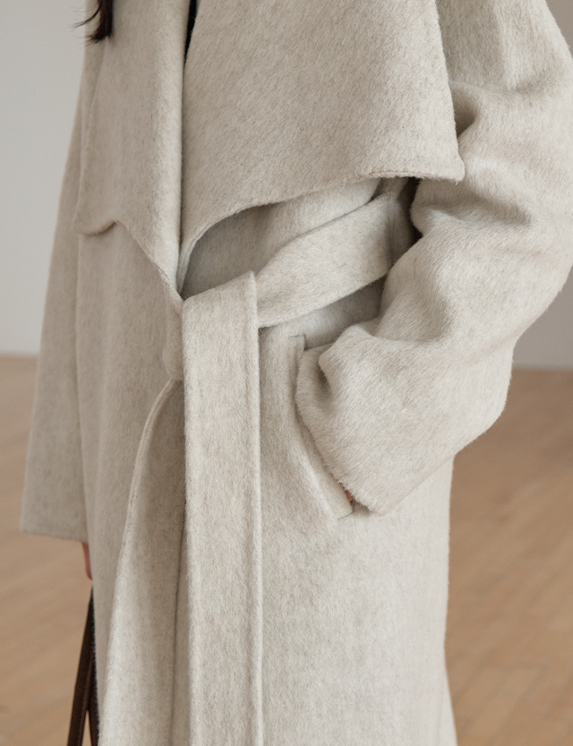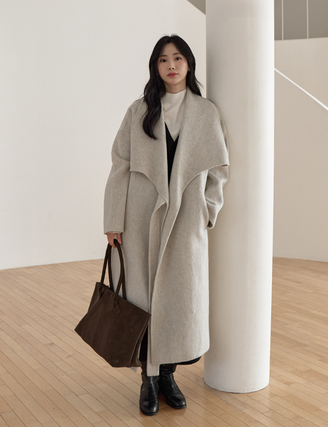 [羊毛 100%] 女人 빅카라 长款 핸드메이드 大衣 84551