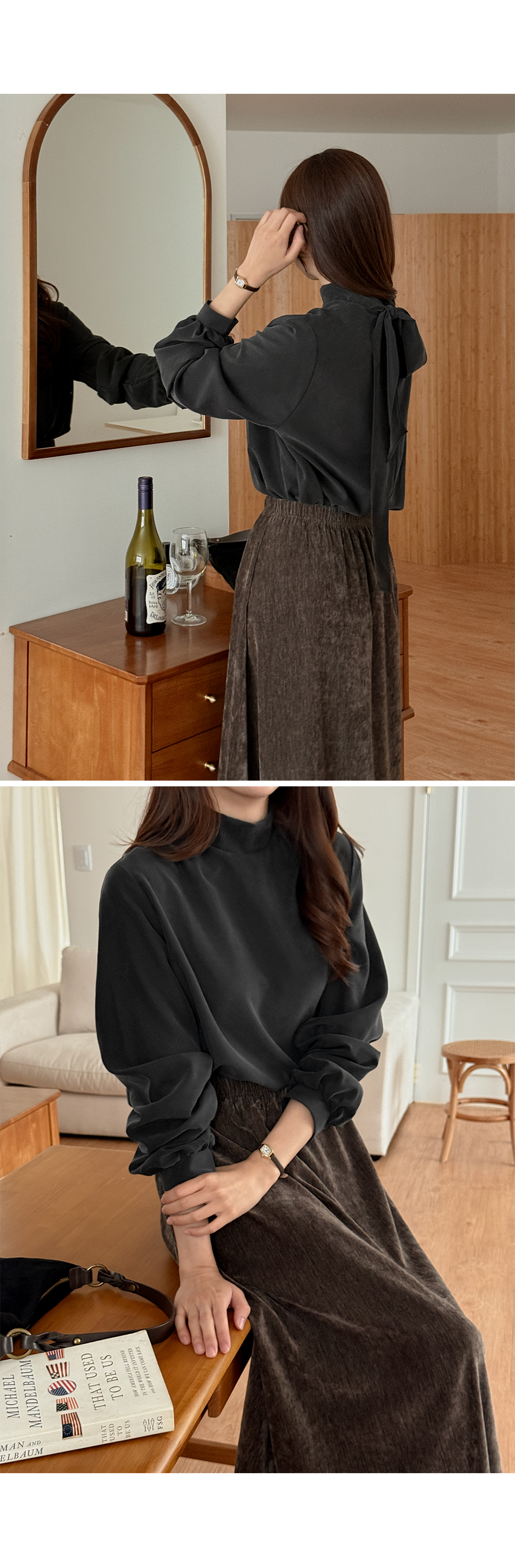돋보이는 타이 블라우스입니다.