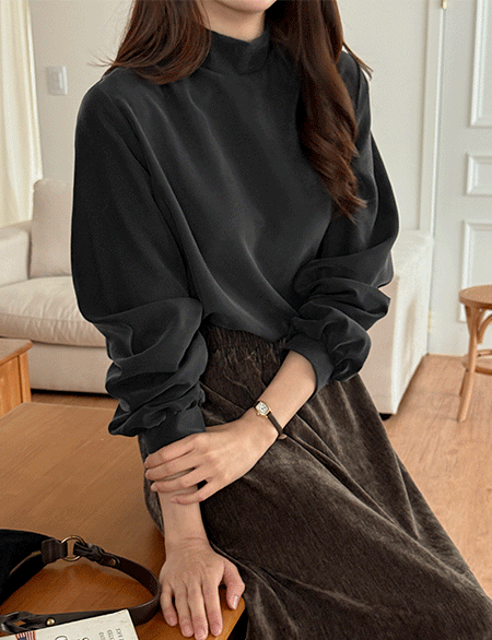 목선을 자연스럽게 감싸주는 하이넥 디테일이 세련된 분위기를 연출하며,