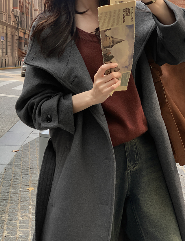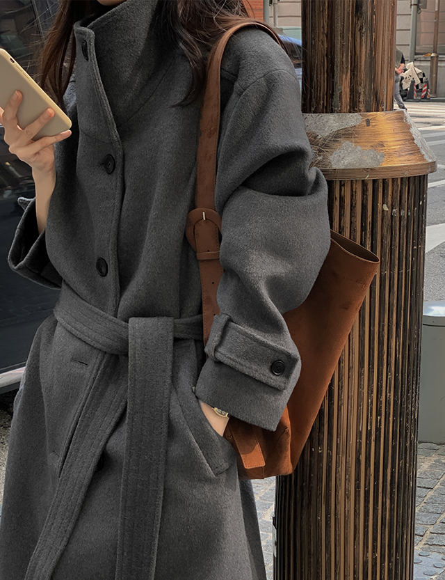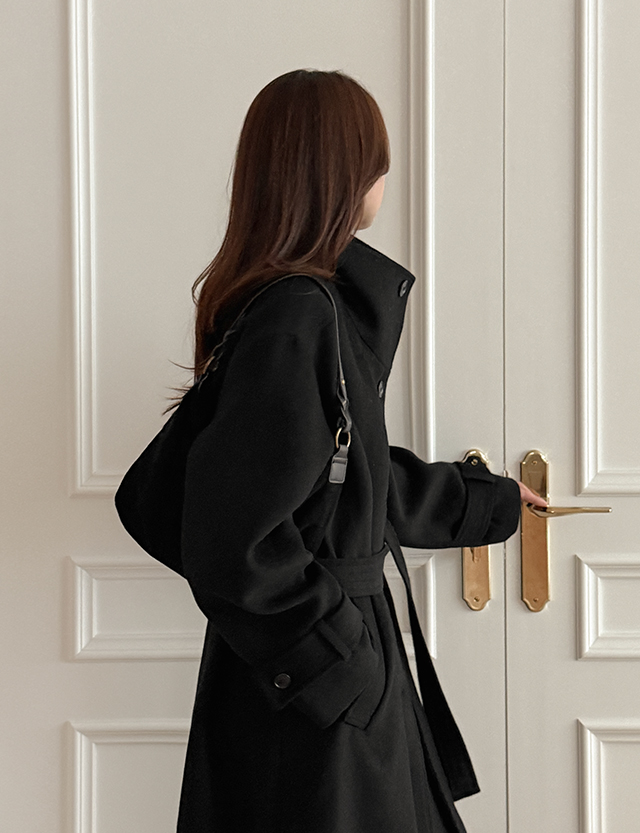 넥단을 감싸주는 하이넥 디테일로 멋스러운 코트