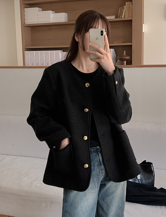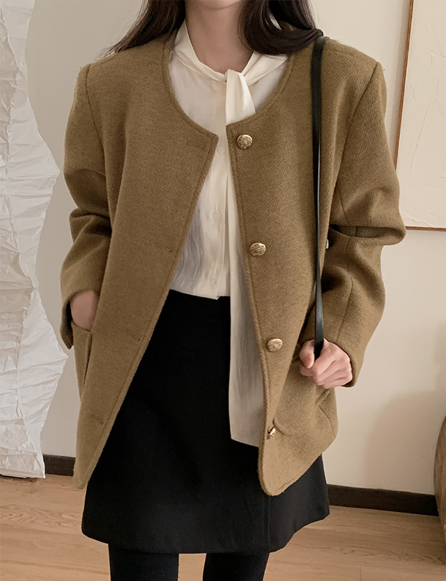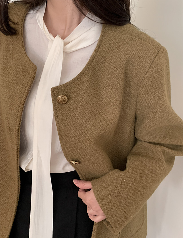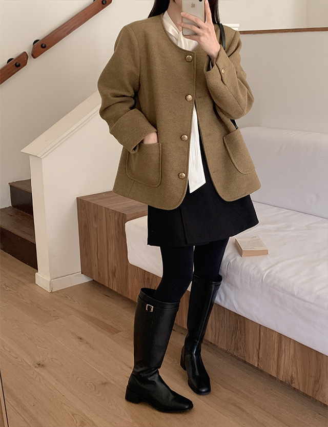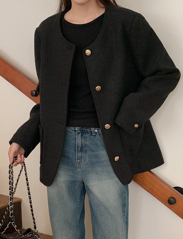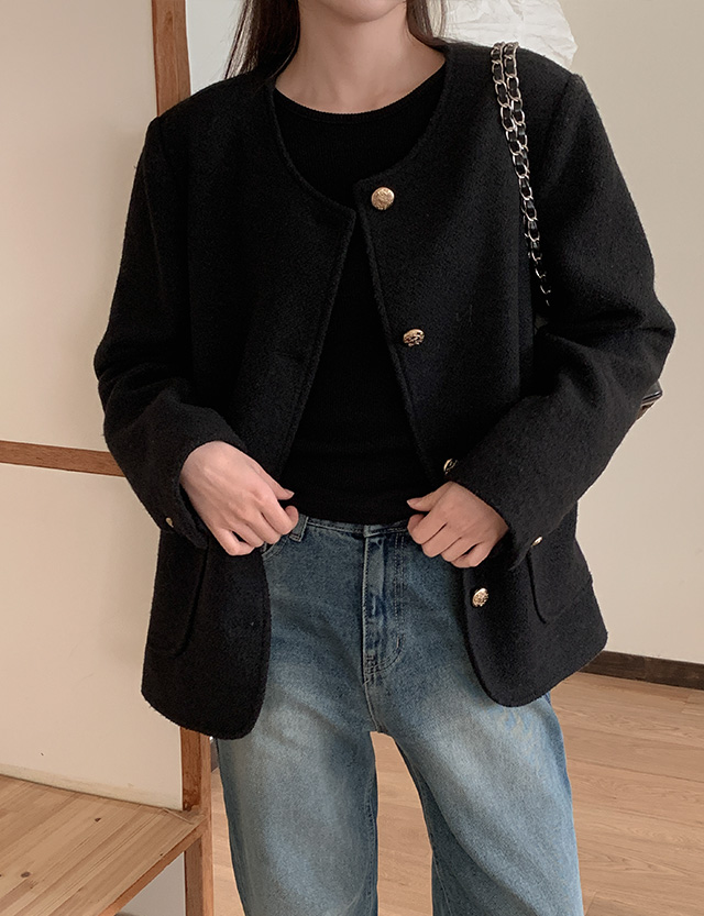 Round Neck Tweed Wool Jacket