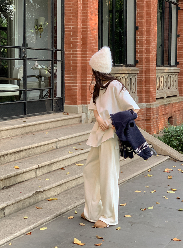 레이어드하기 딱 좋은 宽松 桃色 拉绒 T恤衫 84759