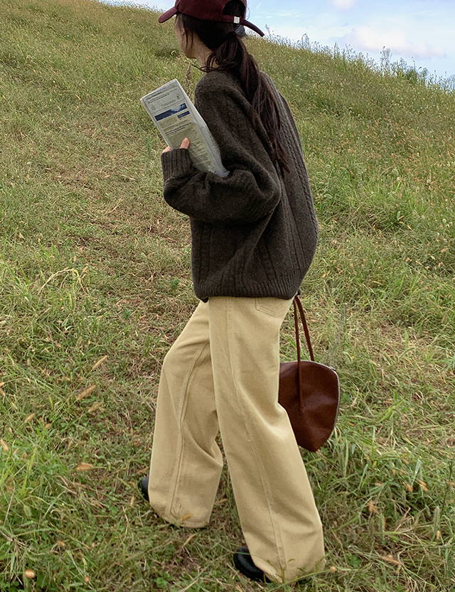 설레임 插肩 케이블 宽松 针织衫 84263