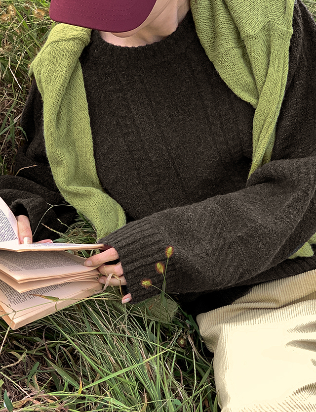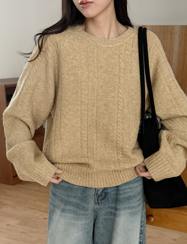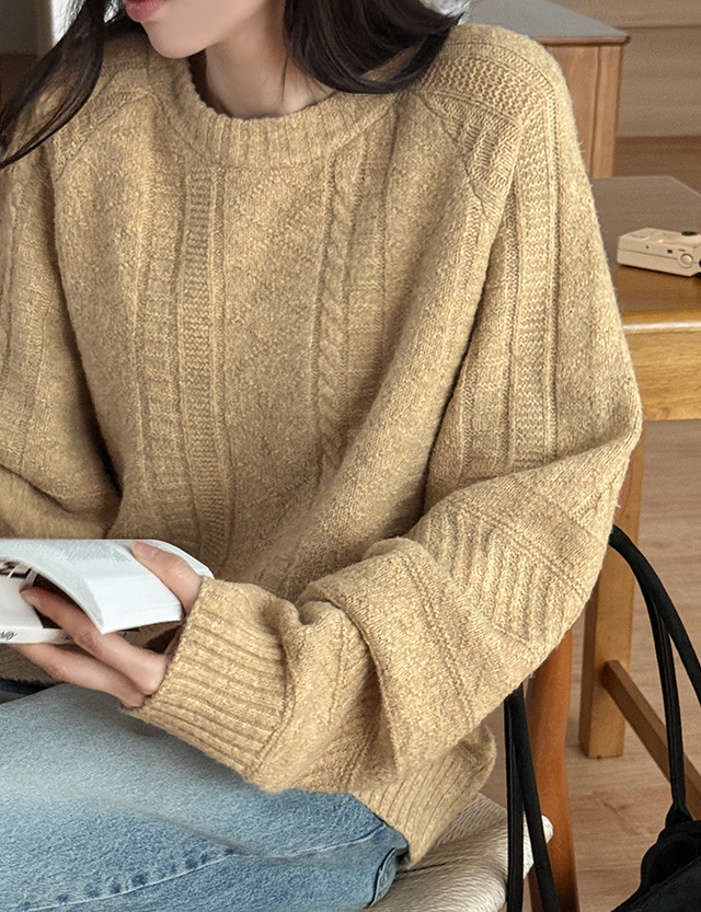 잔잔하게 올라오는 케이블 조직 느낌이 멋스러운 니트