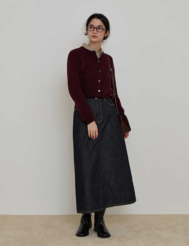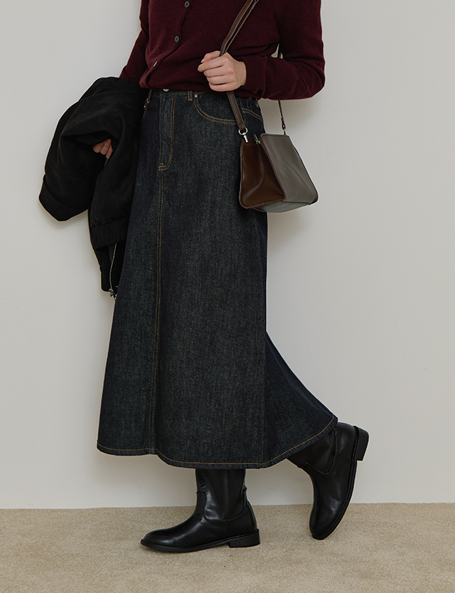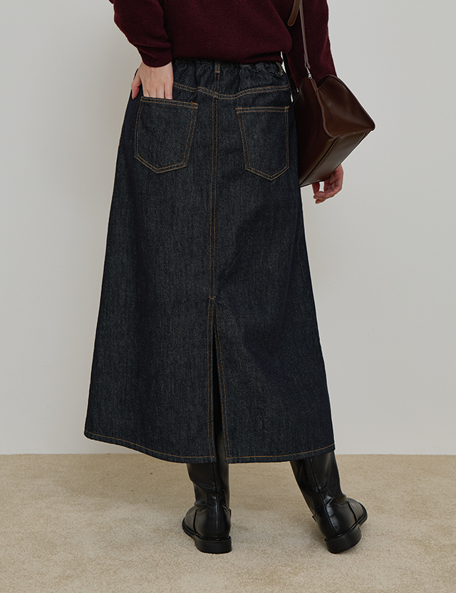 기본템 논페이드 뒷밴딩 牛仔色 长款 裙子 84831