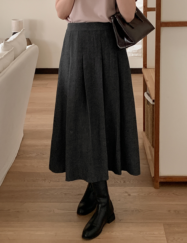 고급스러움이 느껴지는 핀턱 롱 스커트예요.