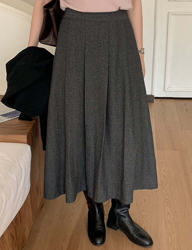 잇츄 헤링본 핀턱 长款 裙子 84776