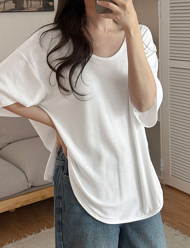 루즈핏 기모 유넥 반팔 티셔츠 🧸