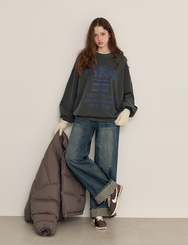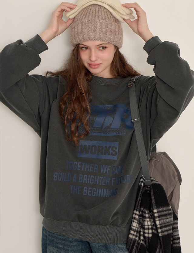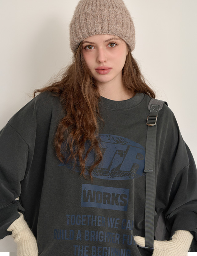 웍스 피그먼트 印刷 리얼루즈핏 套头卫衣 84717