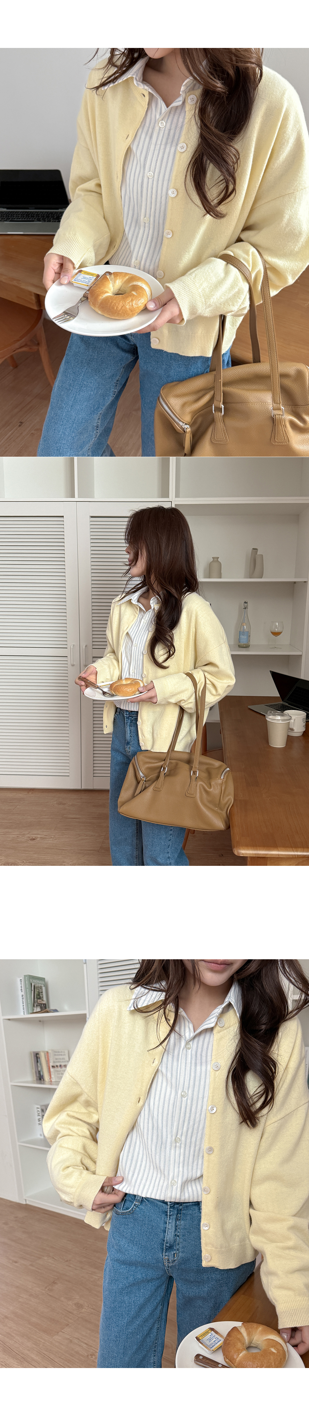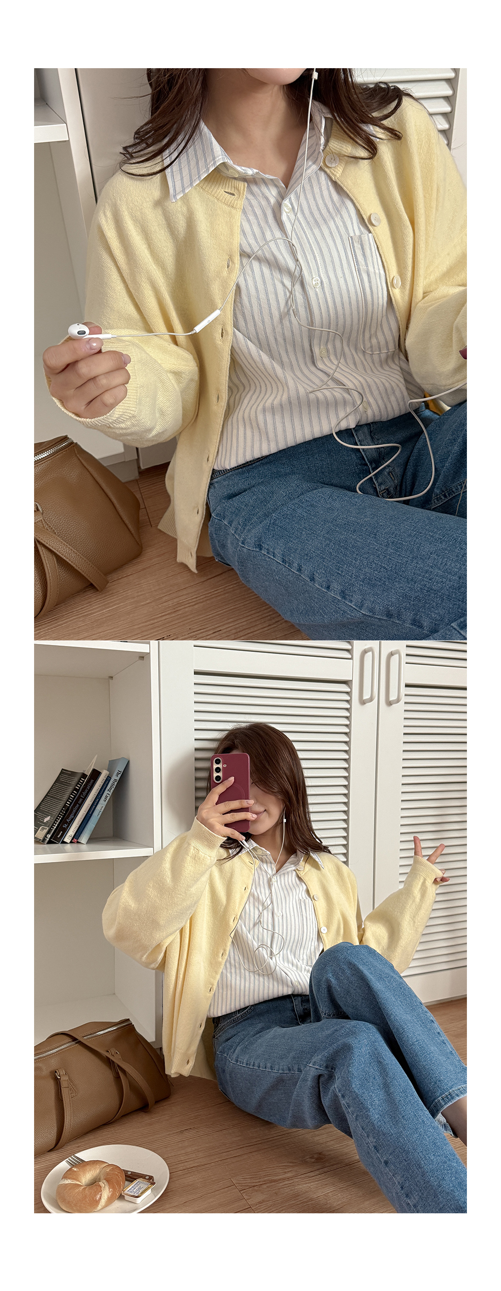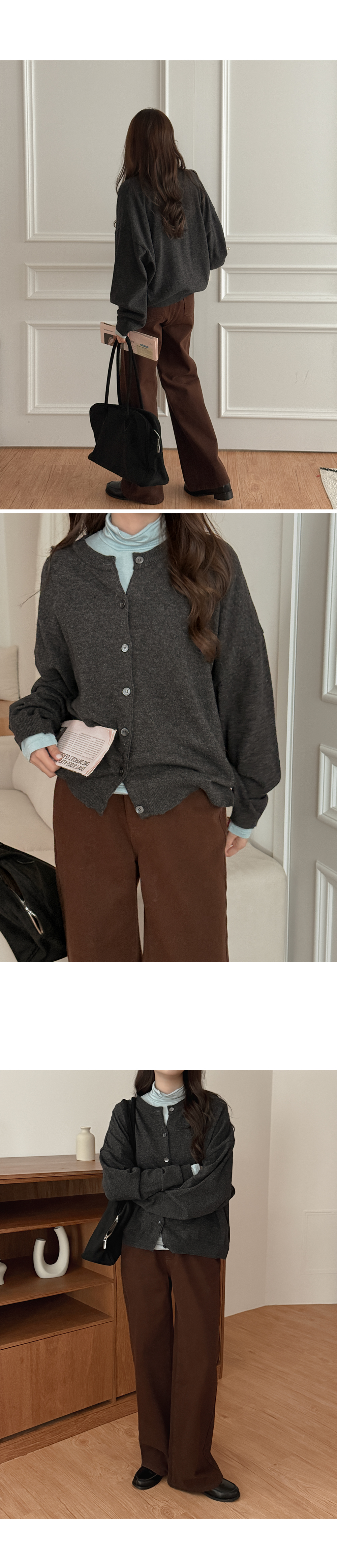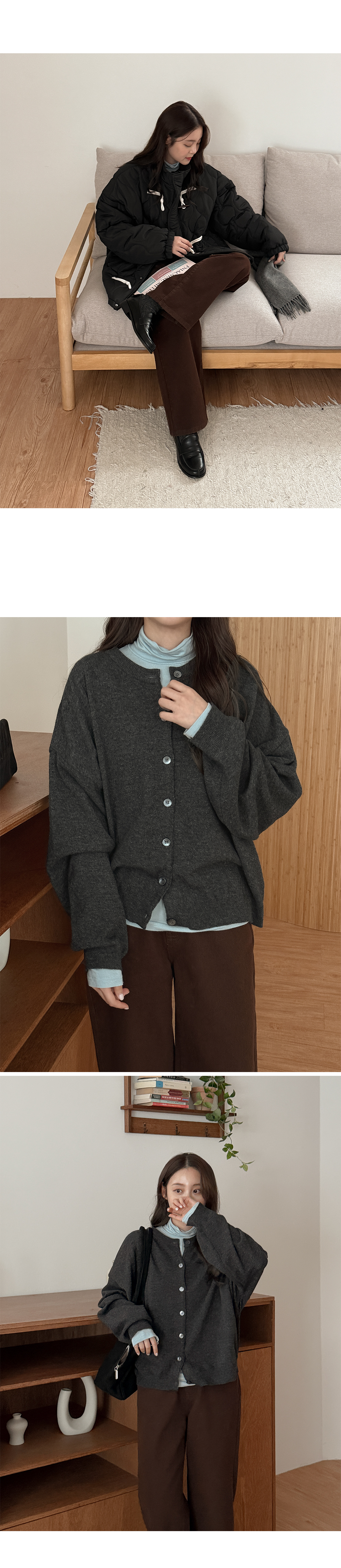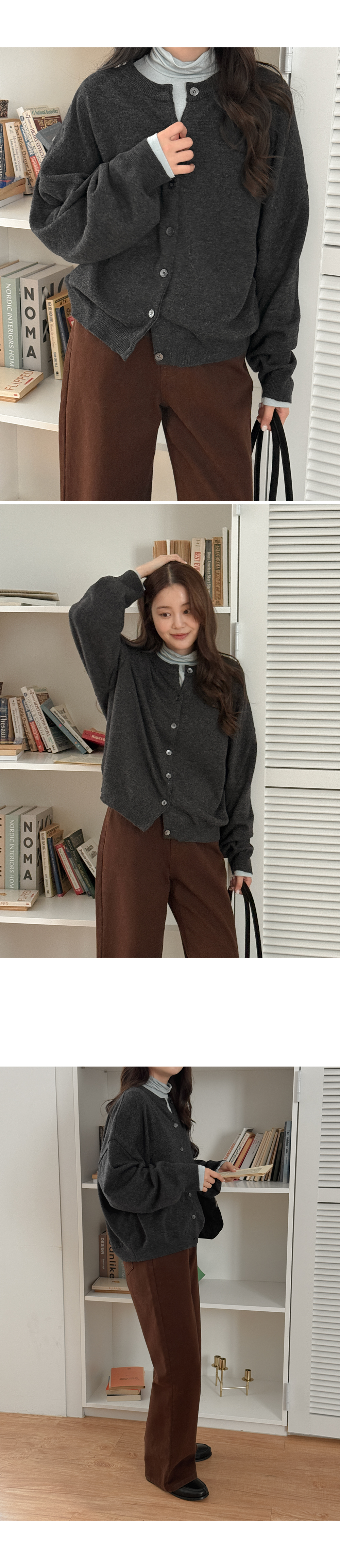 - 니트와 비슷한 컬러의 단추로 통일감
