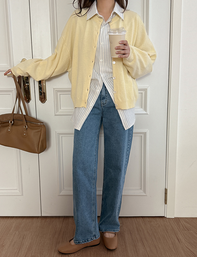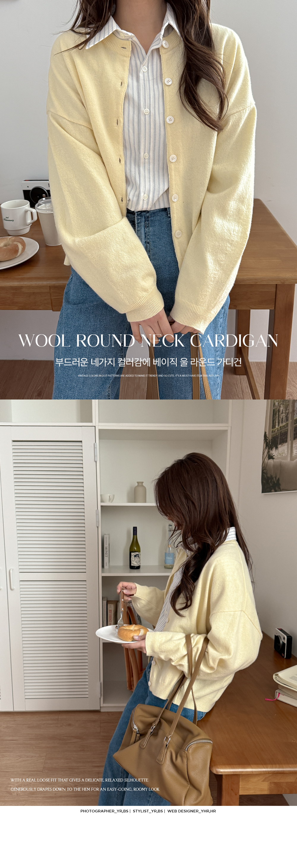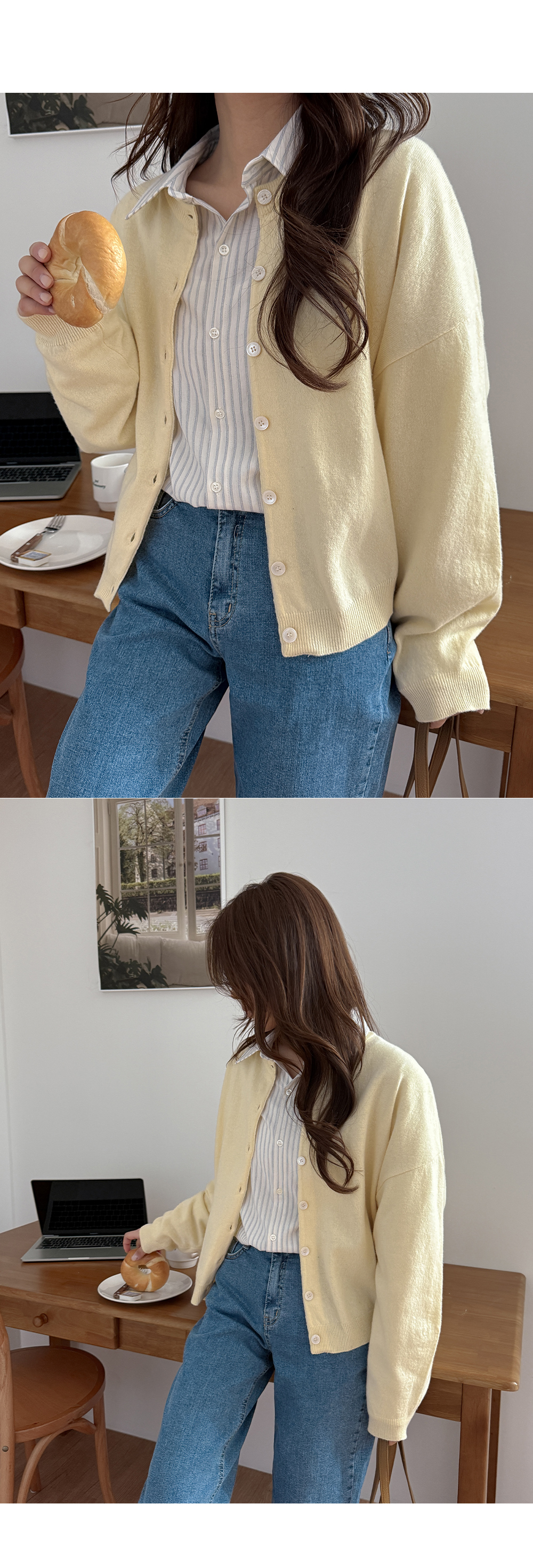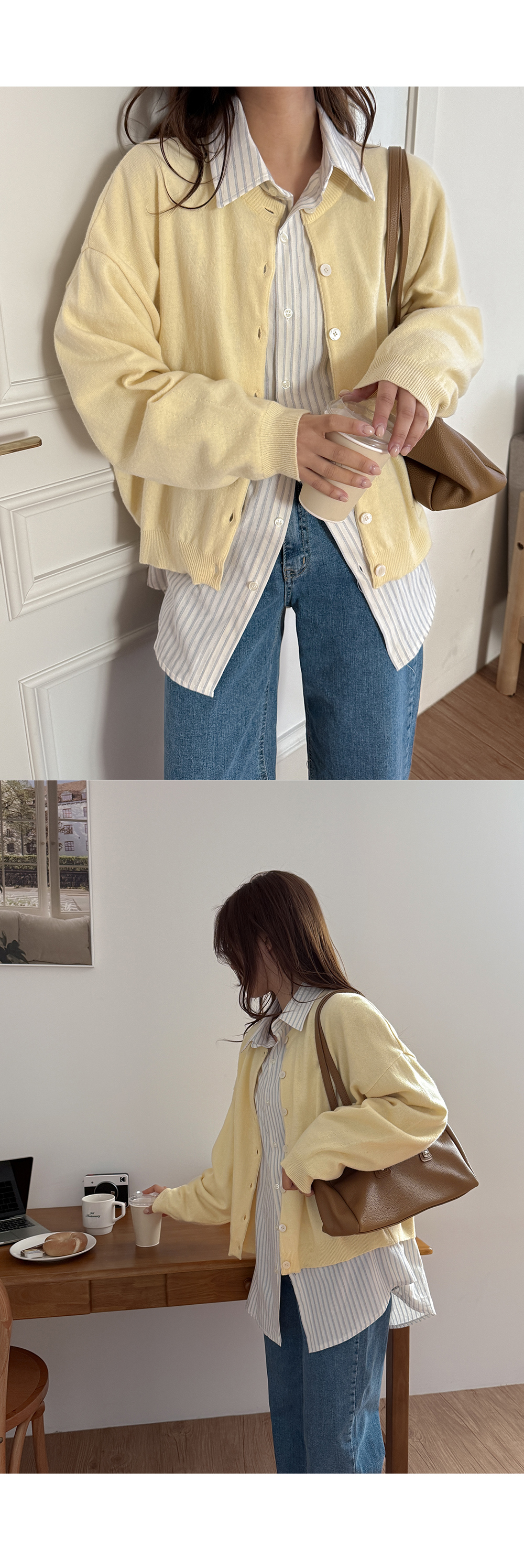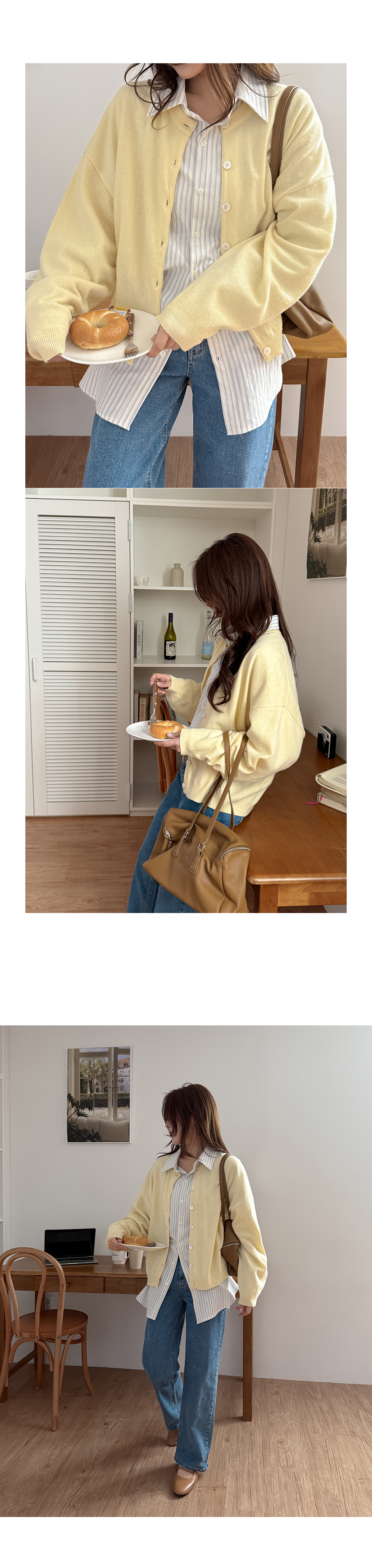 - 니트와 비슷한 컬러의 단추로 통일감