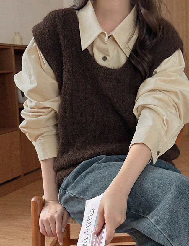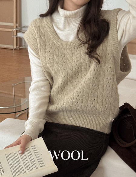 포실포실 宽松 印花 羊毛 针织衫 马甲 84667