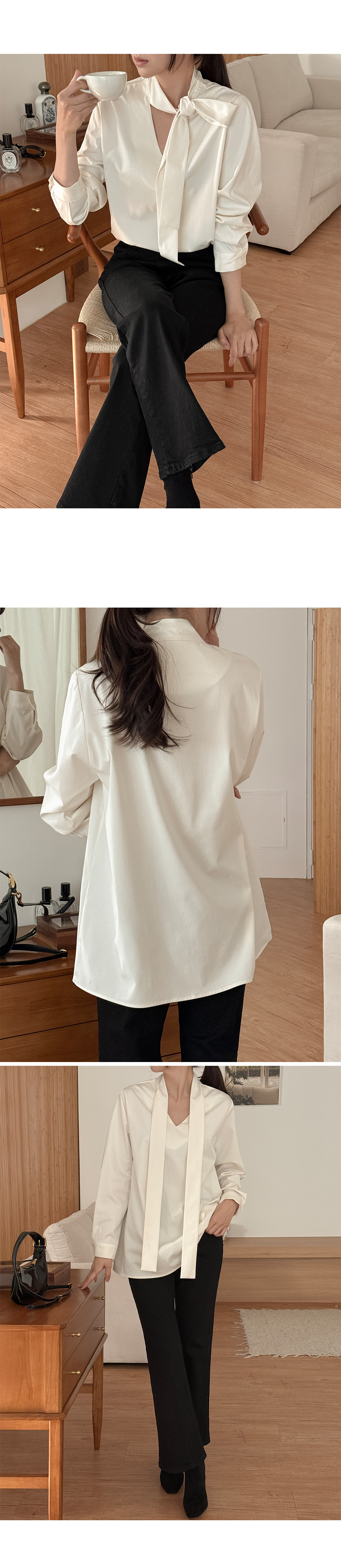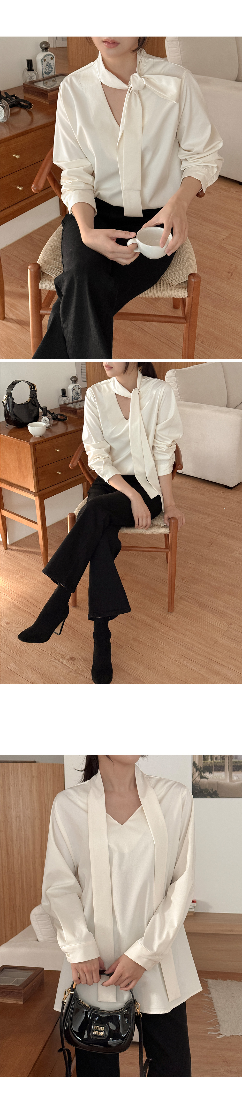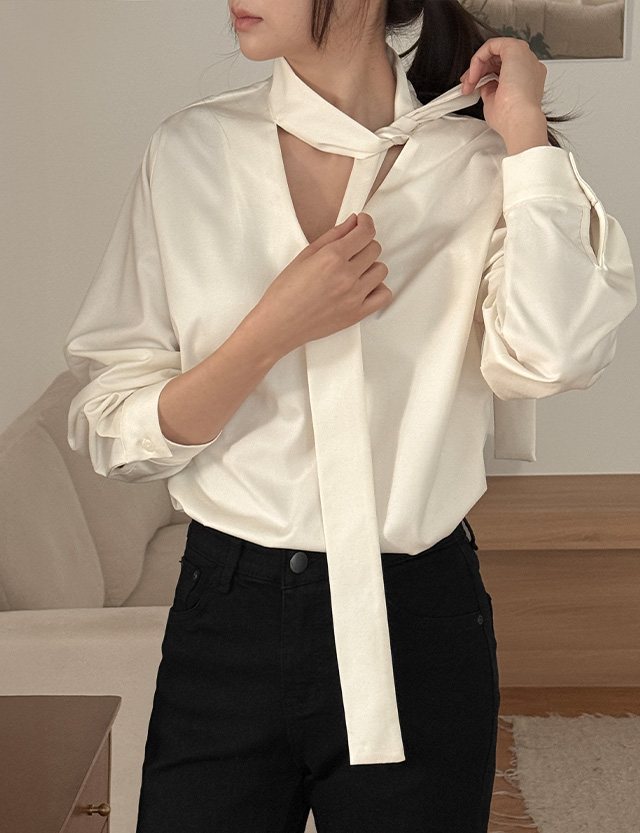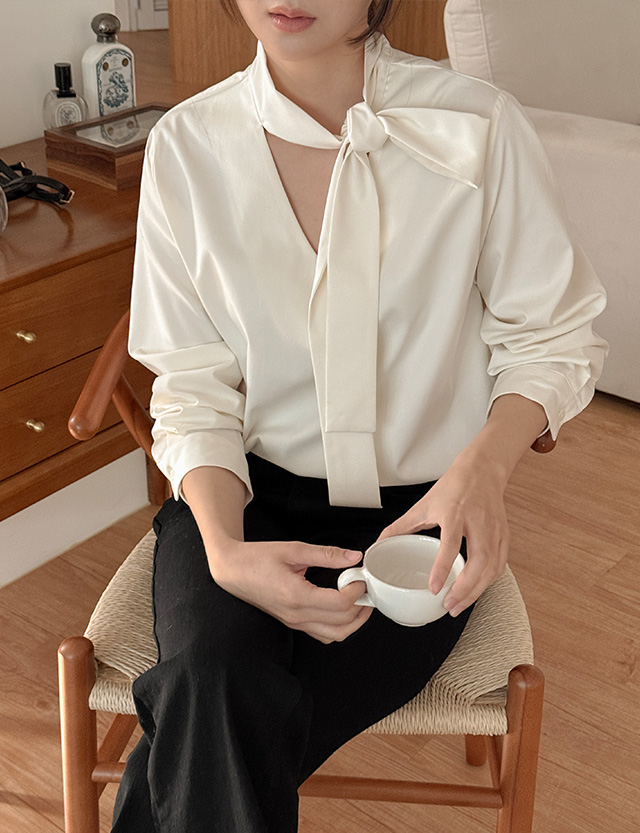 어디서든 세련된 무드를 만들어주는 타이 블라우스예요
