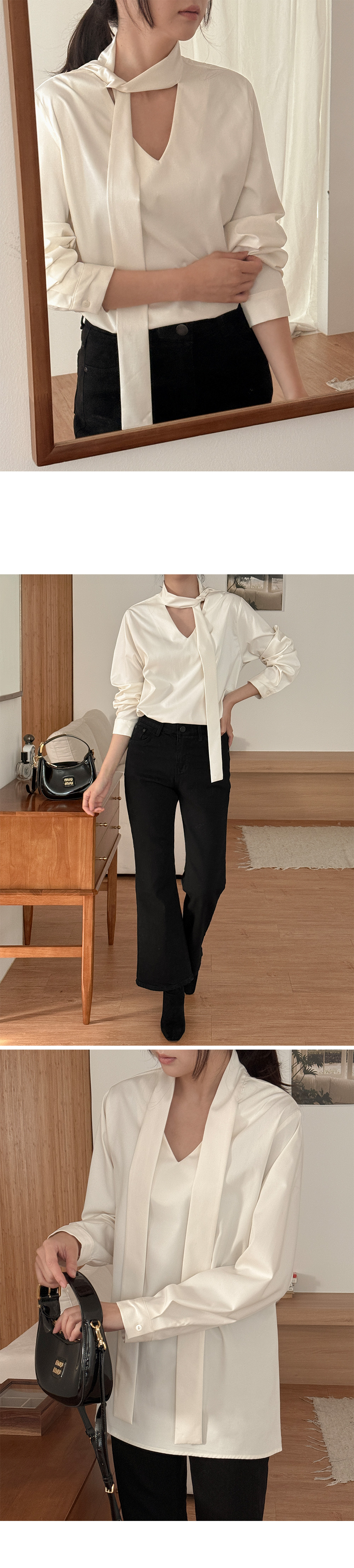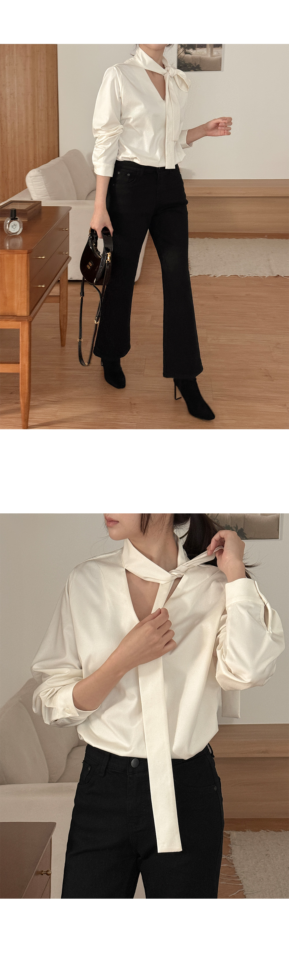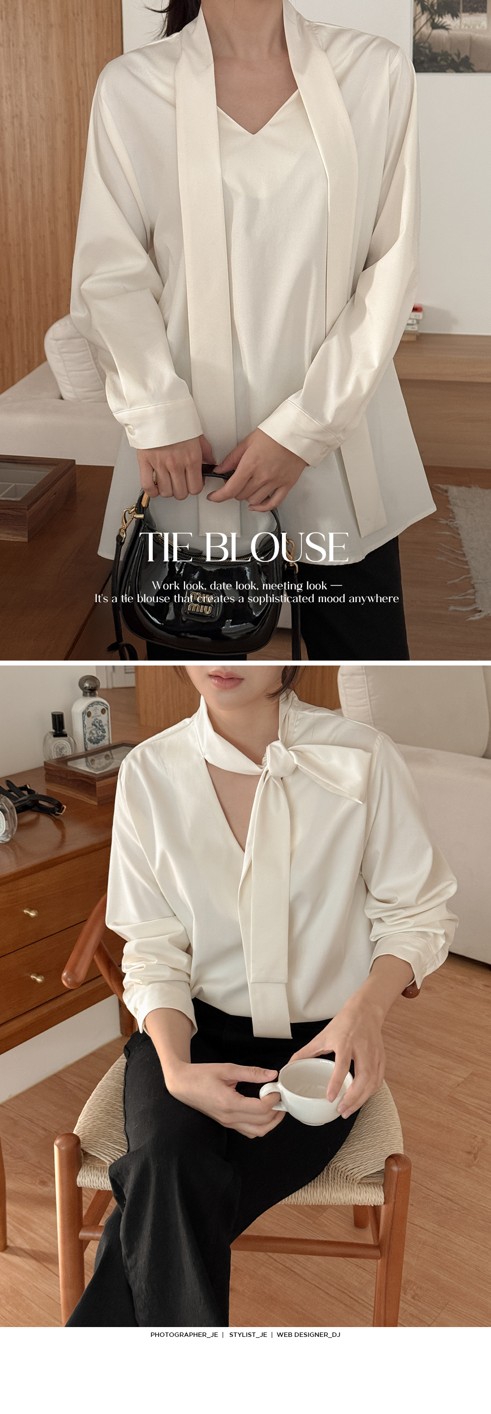 어디서든 세련된 무드를 만들어주는 타이 블라우스예요
