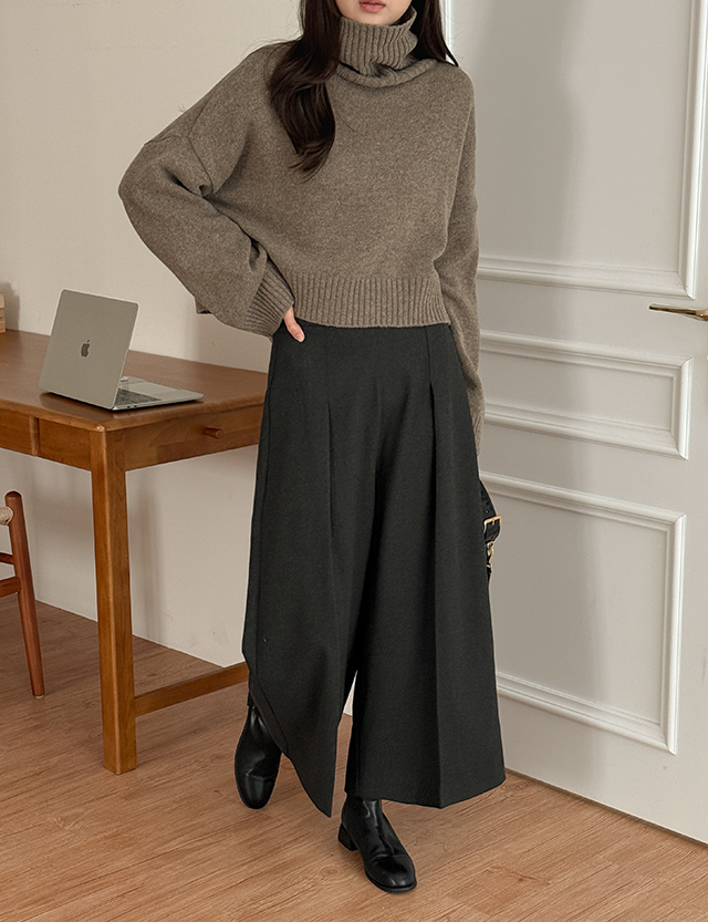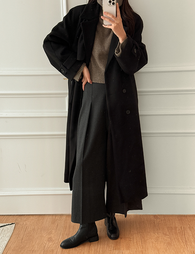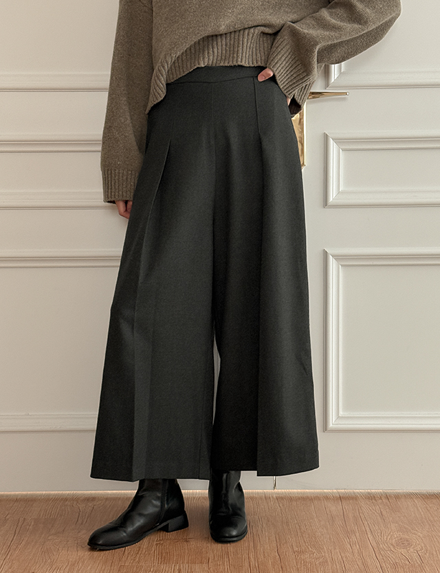 리얼 와이드한 실루엣의 모직 와이드 팬츠