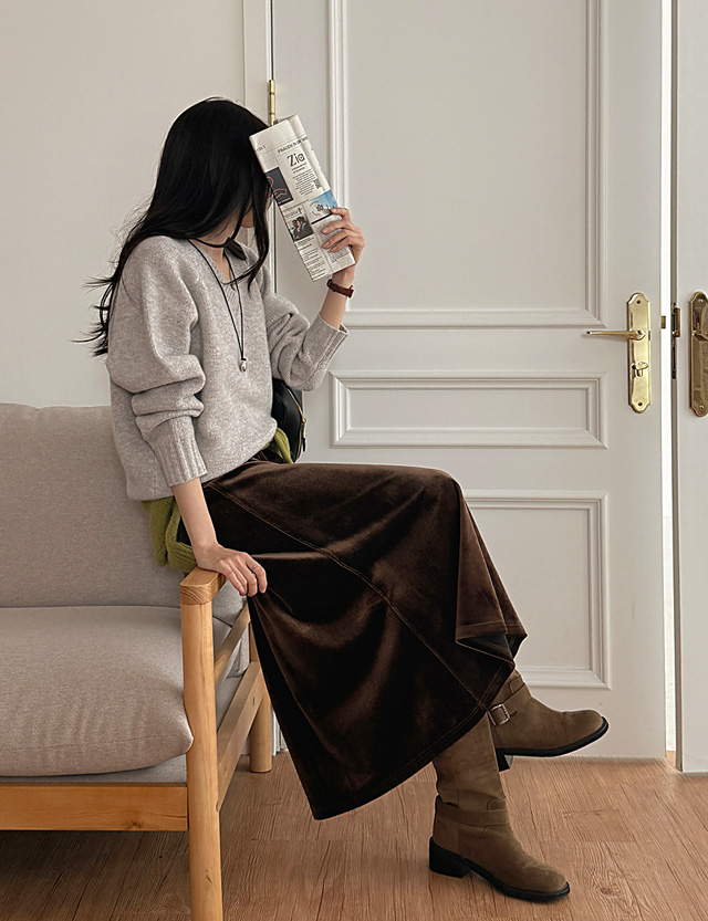초리하게 떨어져 여성스럽게 작용하는 스커트