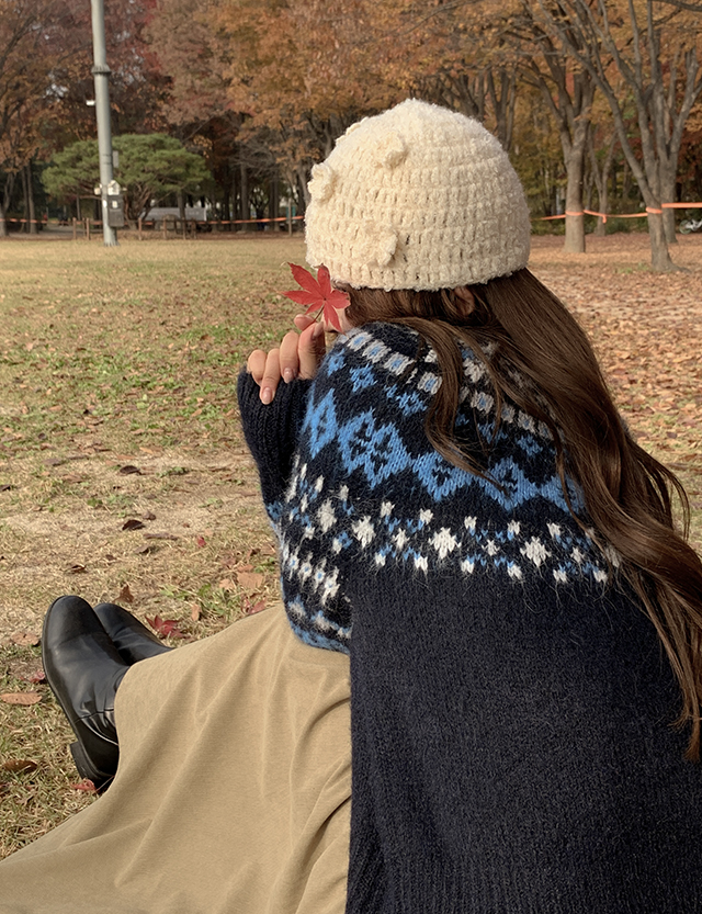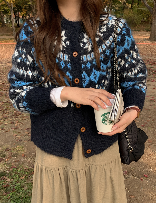 겨울 분위기를 가장 예쁘게 담은 스노우 노르딕가디건이에요
