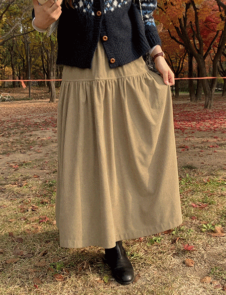 • 미러비 松紧带 코듀로이 长款 裙子 85069