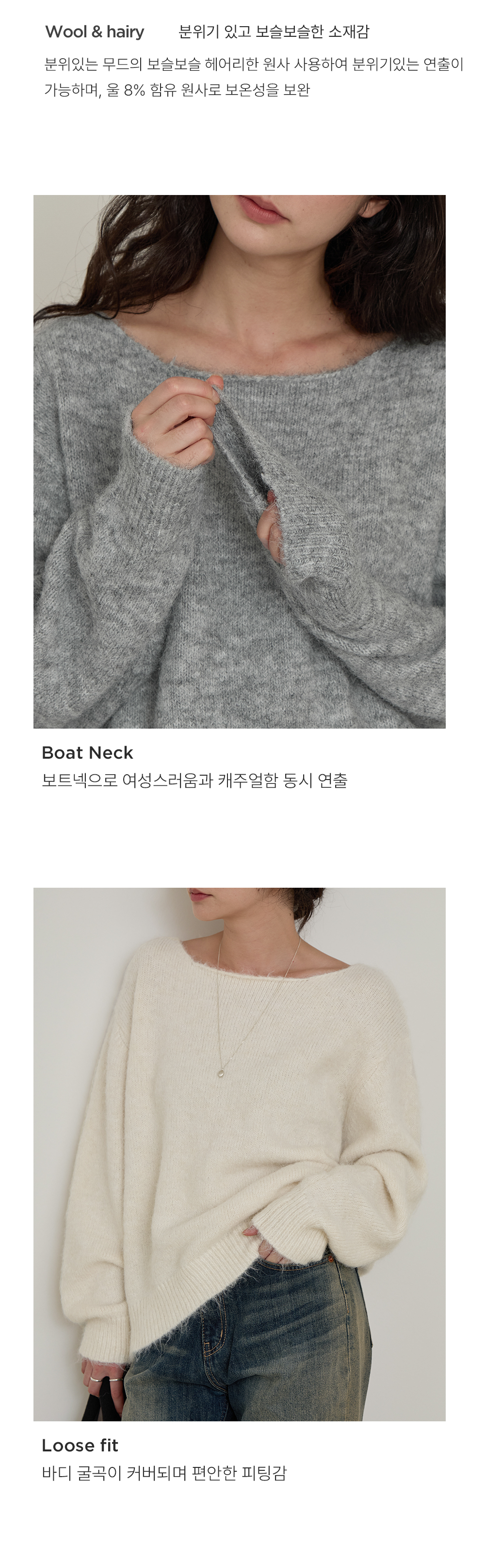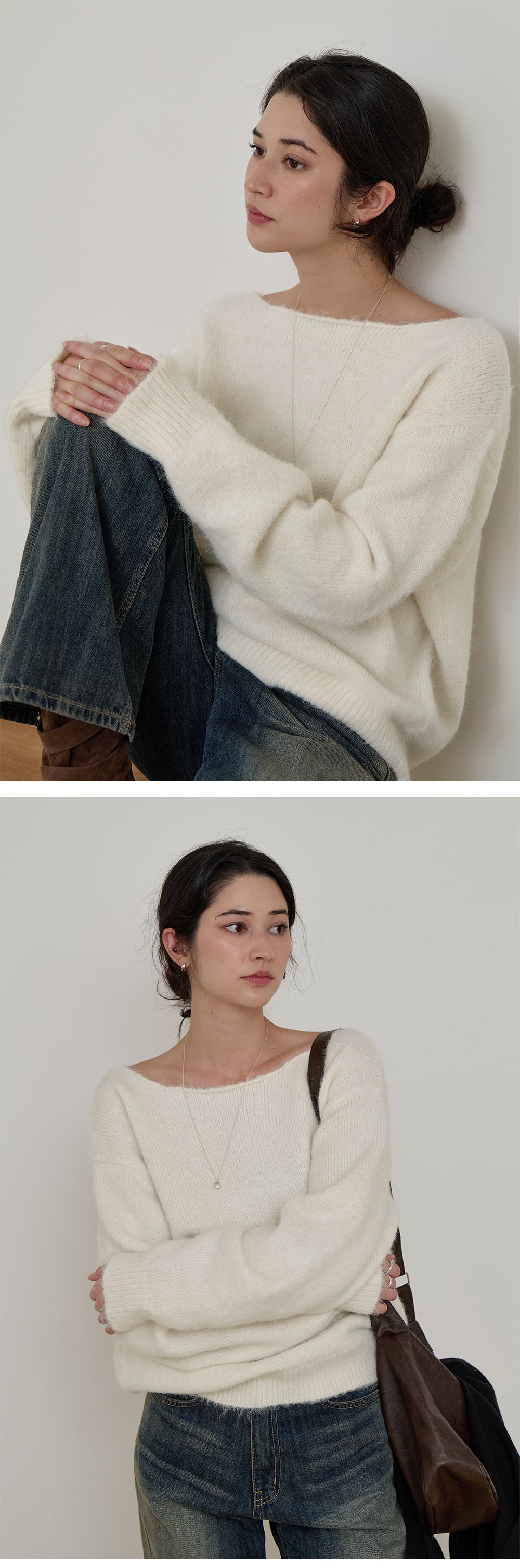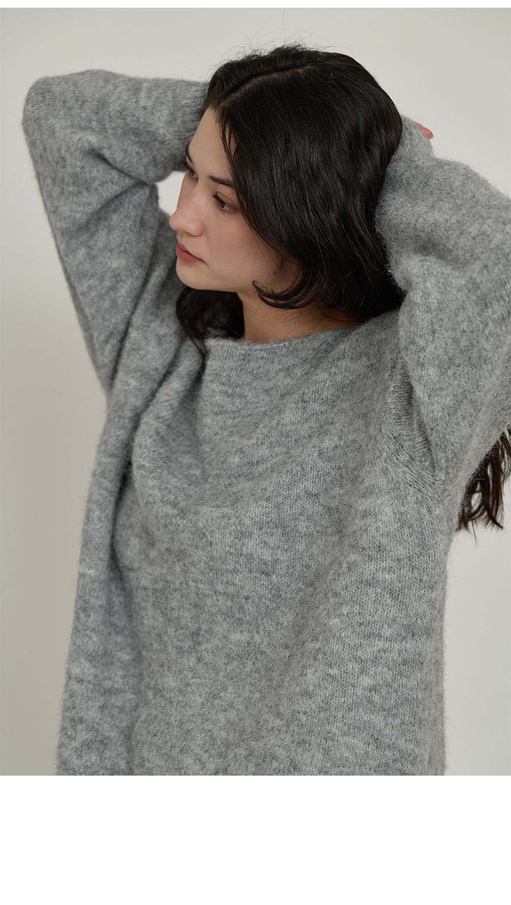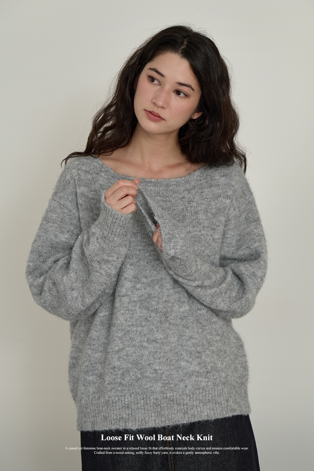 분위기 있는 羊毛 宽松 보트넥 针织衫 84833
