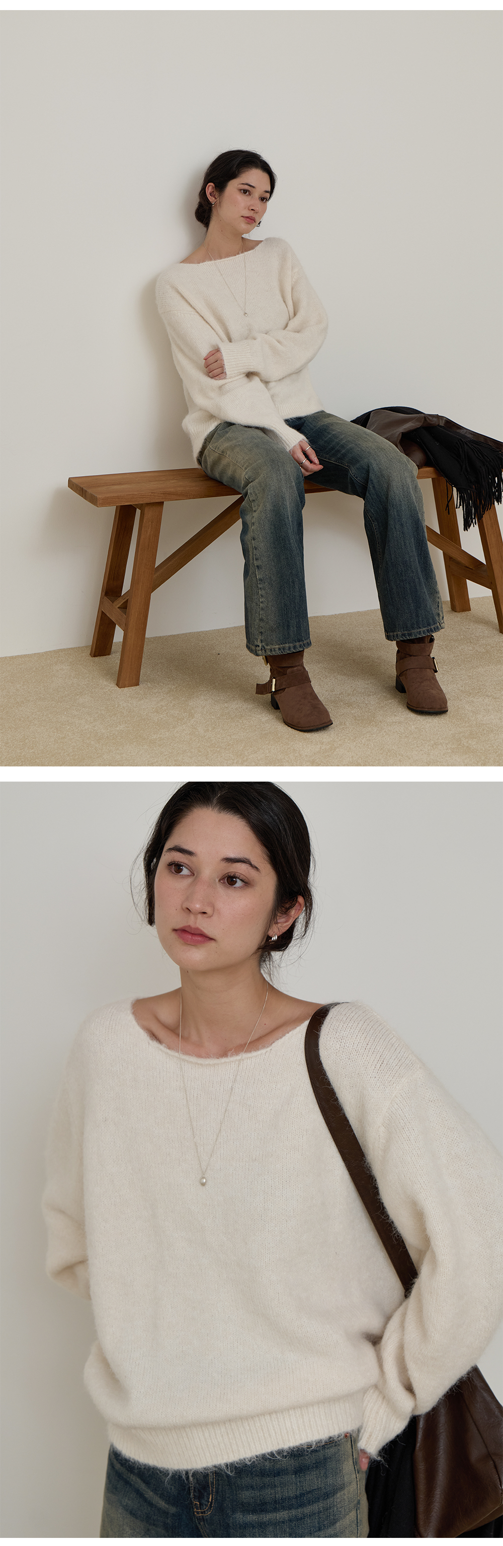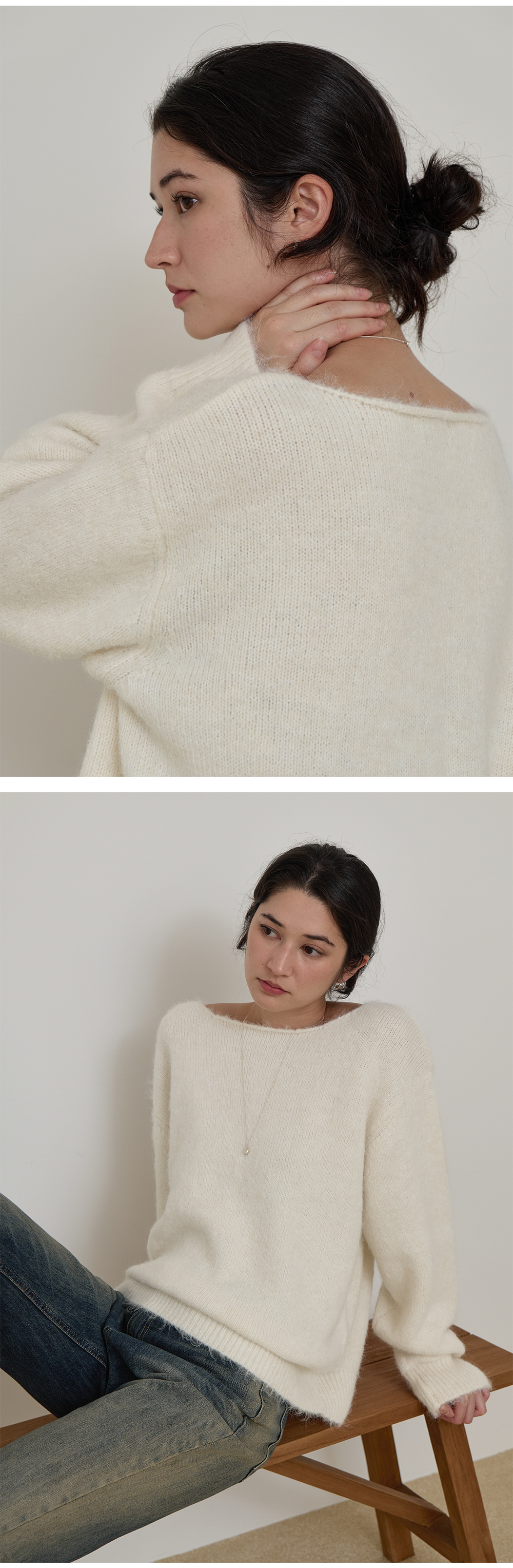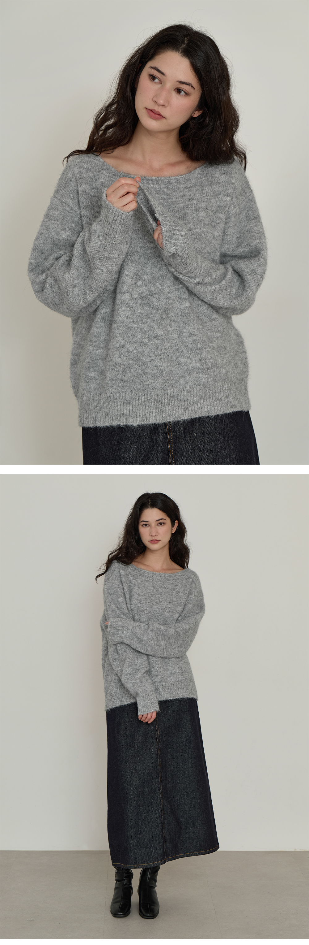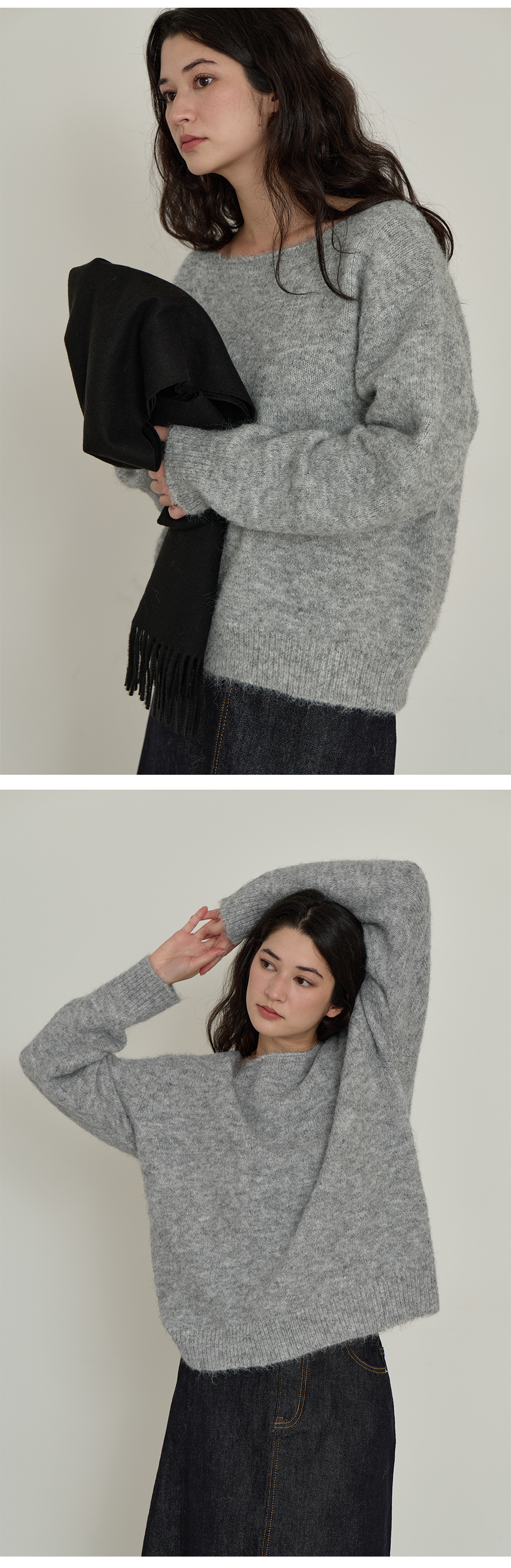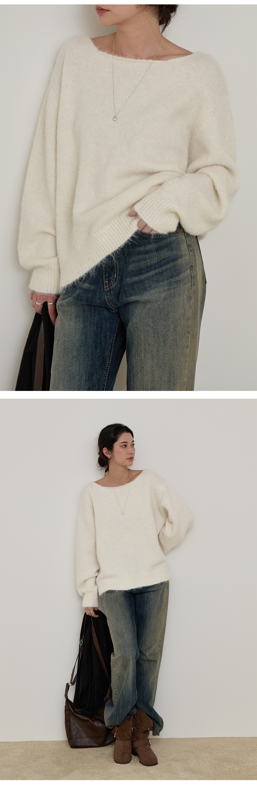 분위기 있는 羊毛 宽松 보트넥 针织衫 84833