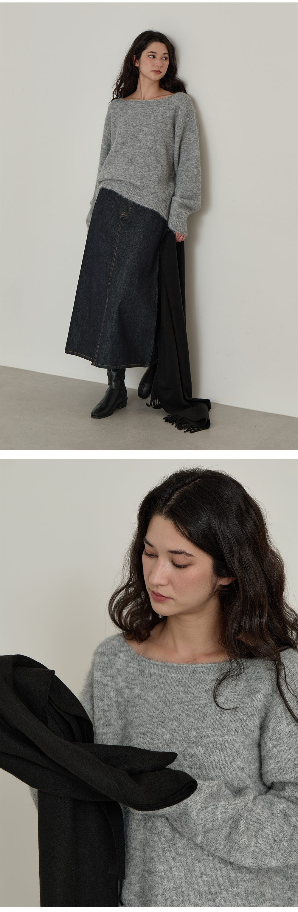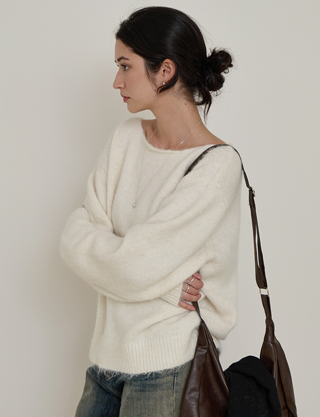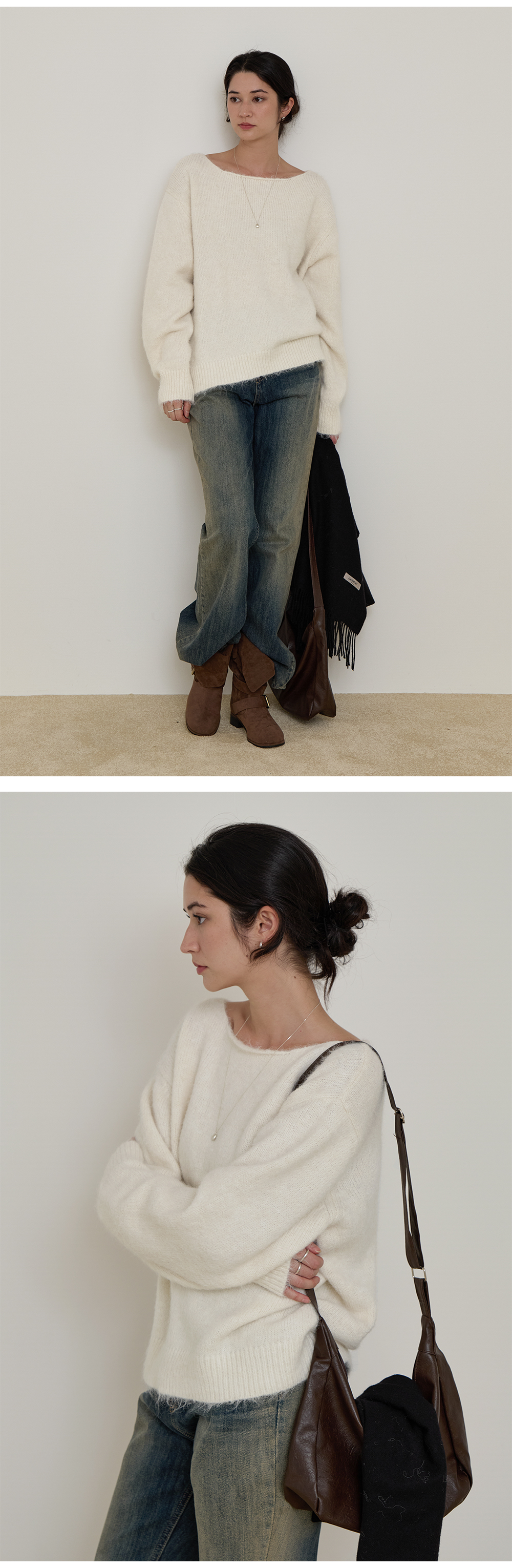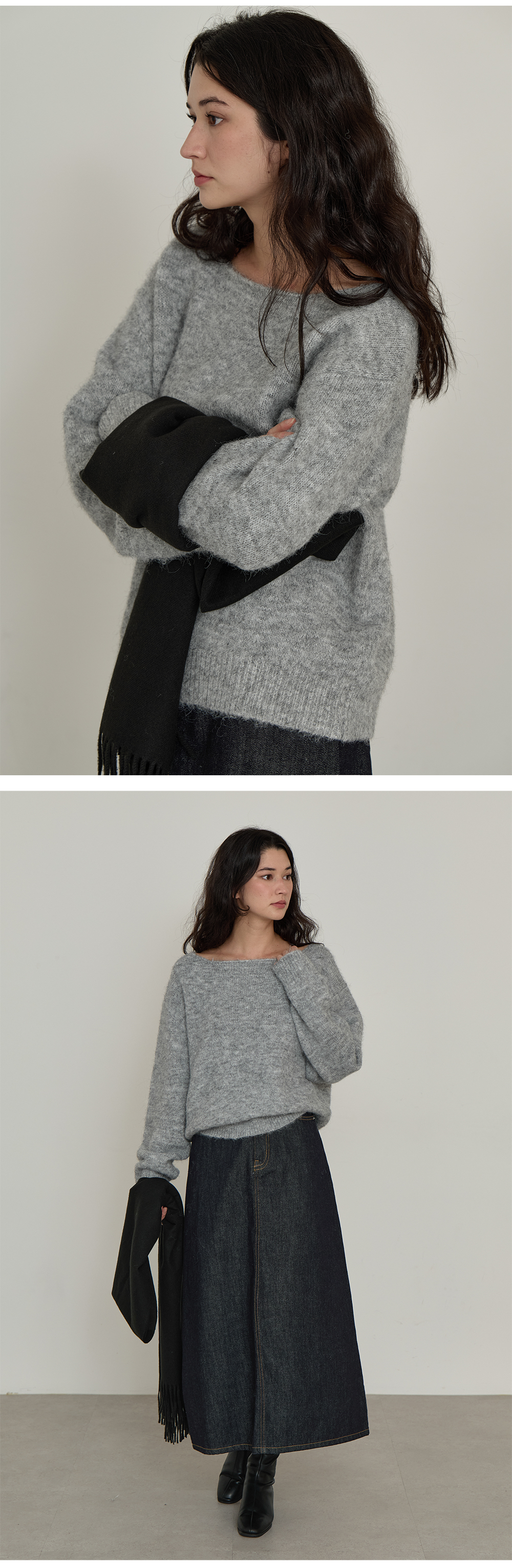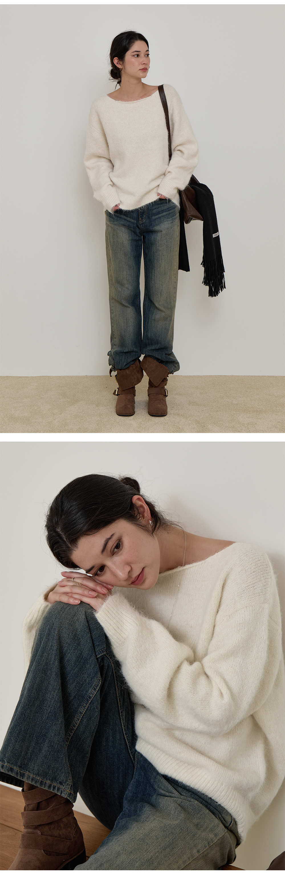 분위기 있는 羊毛 宽松 보트넥 针织衫 84833